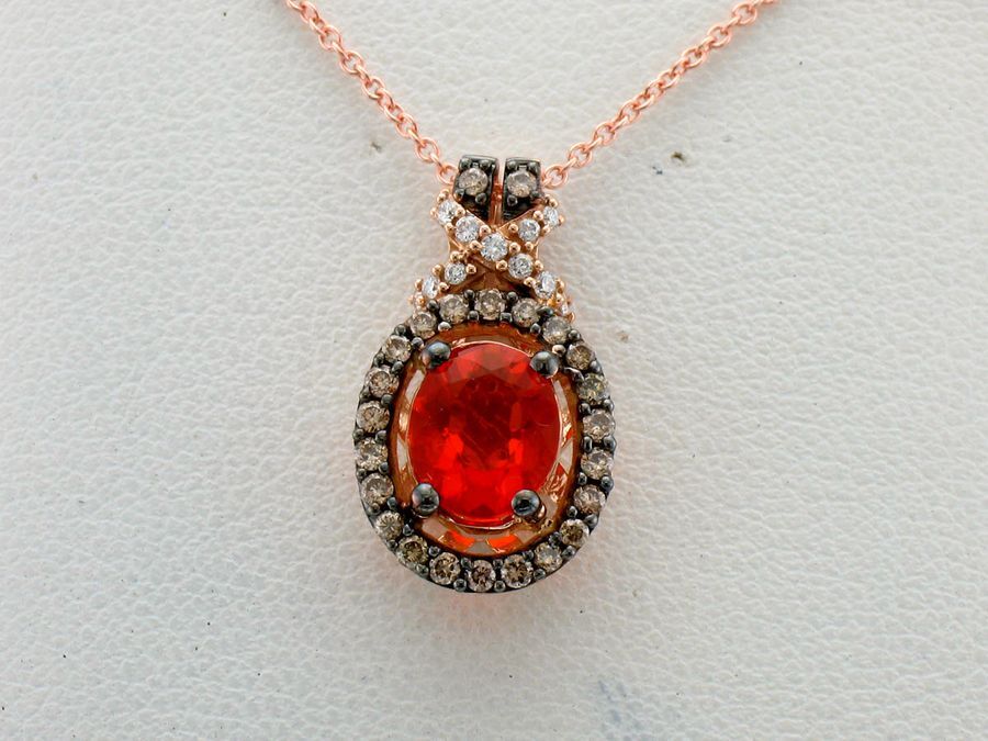 Le Vian Pendant featuring 1 cts. Neon Tangerine Fire Opal, 1/4 cts. Chocolate Diamonds, 1/20 cts. White Diamonds set in 14K Rose Gold