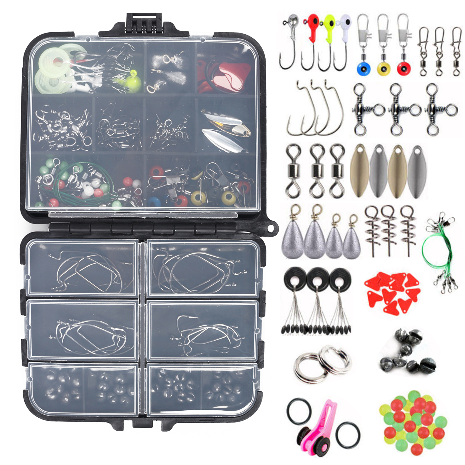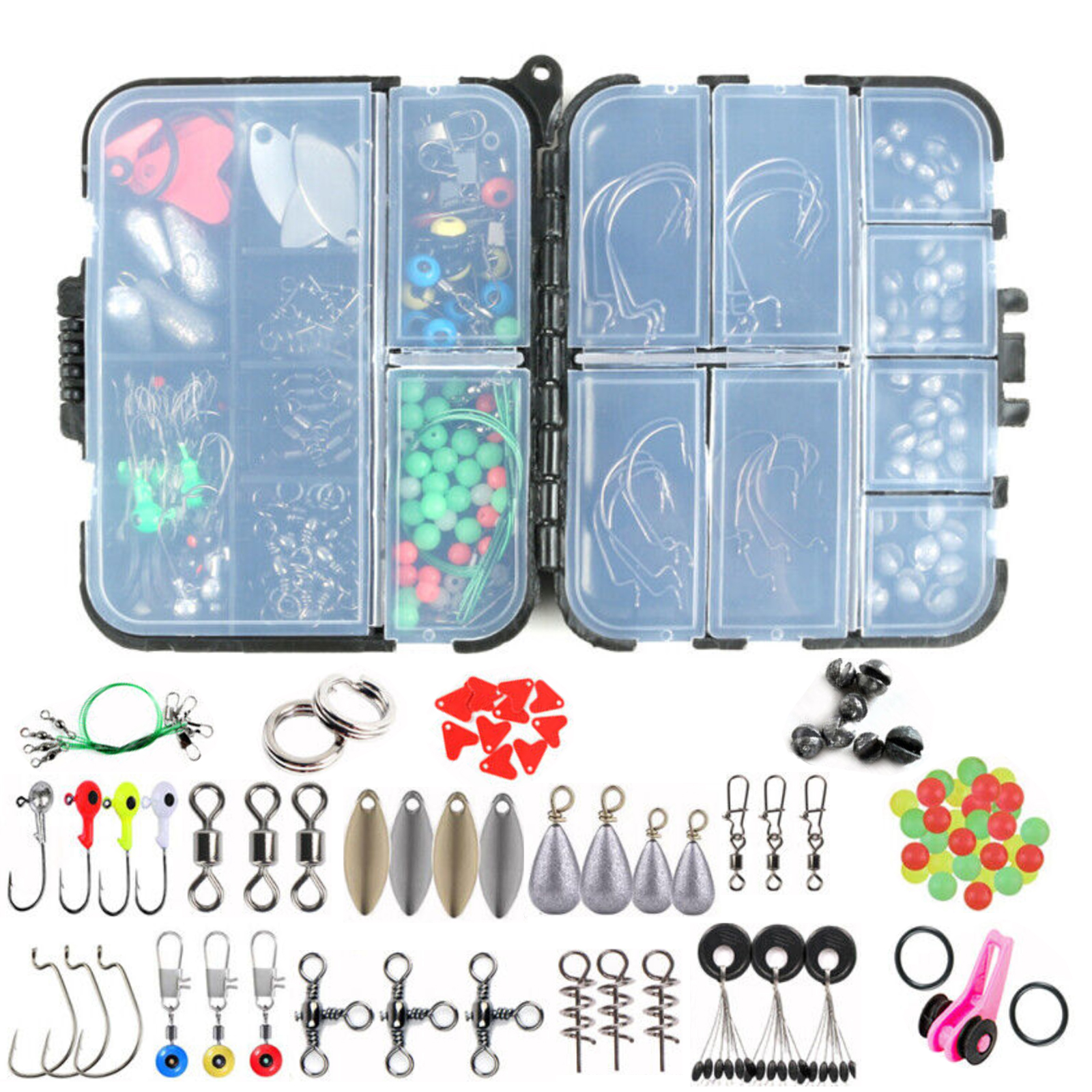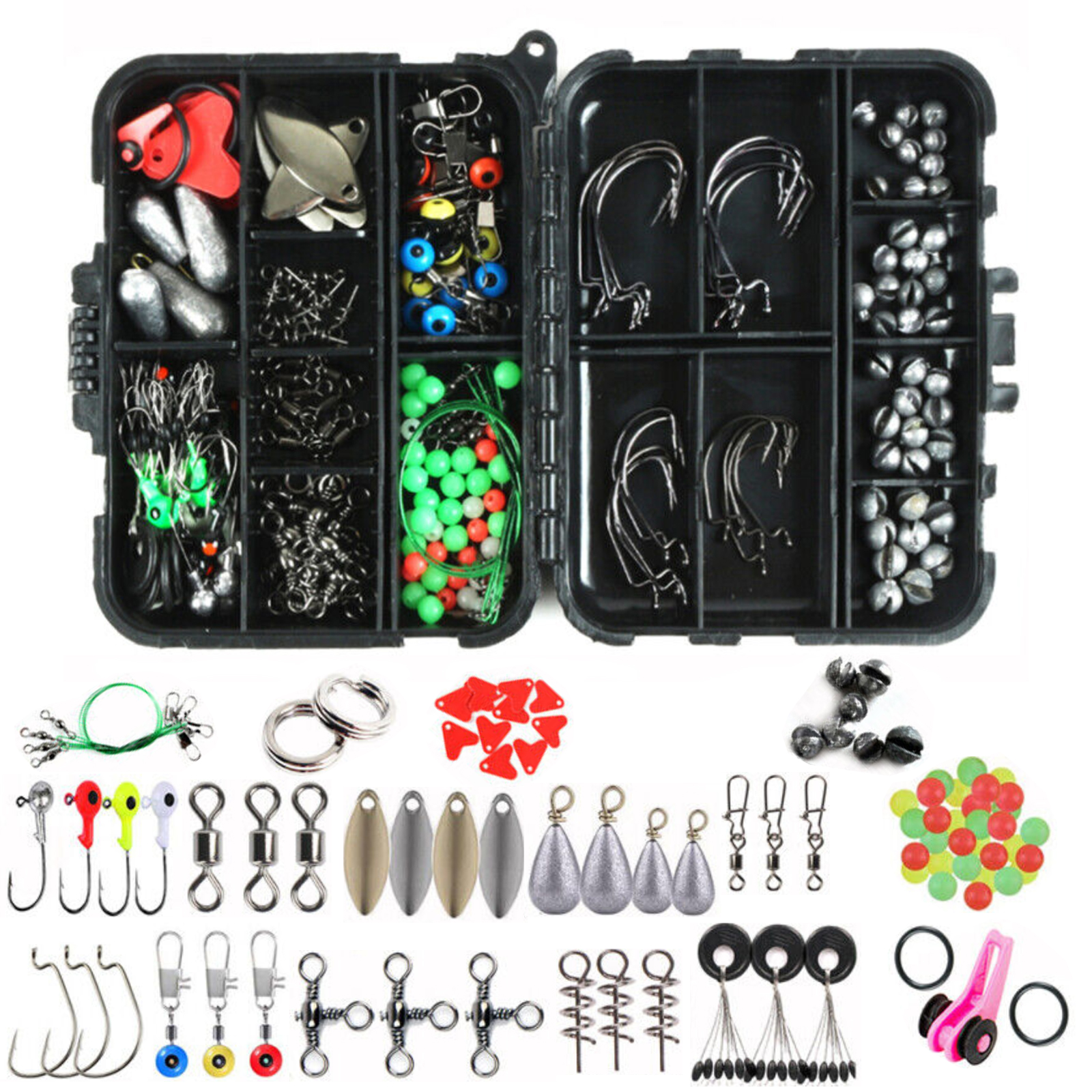 188Pcs Fishing Tackle Kit Accessories Lures/Sinker/Weights/Beads/Hooks/Swivels F