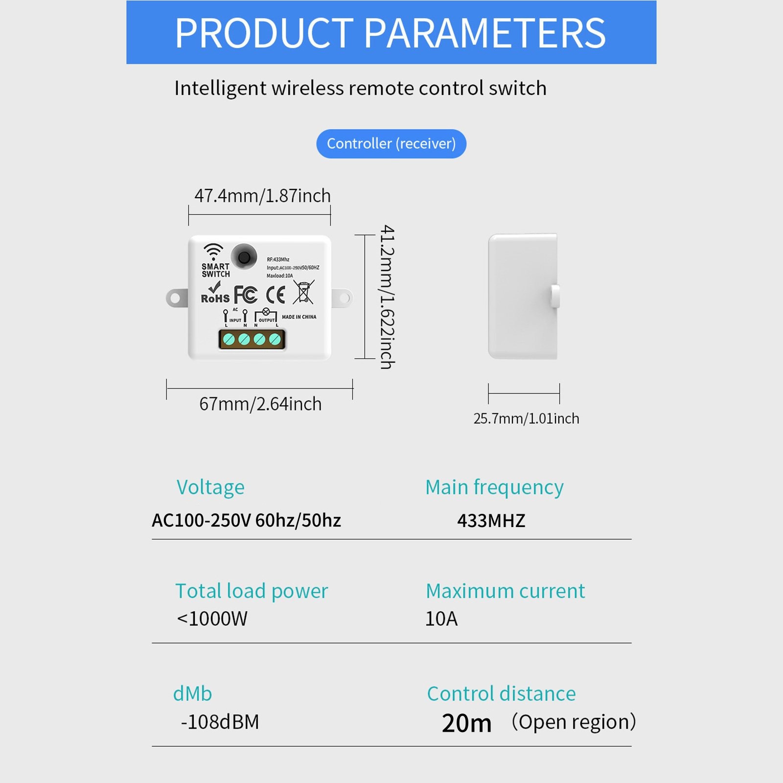 Wireless Remote Control Switch Lamps Controller Electrical Appliances 433MHz