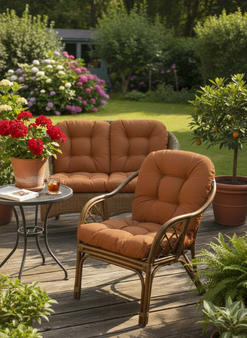 I cuscini per poltrone in rattan ATHENA sono stati creati per i popolari mobili da giardino o terrazza in rattan o vimini.