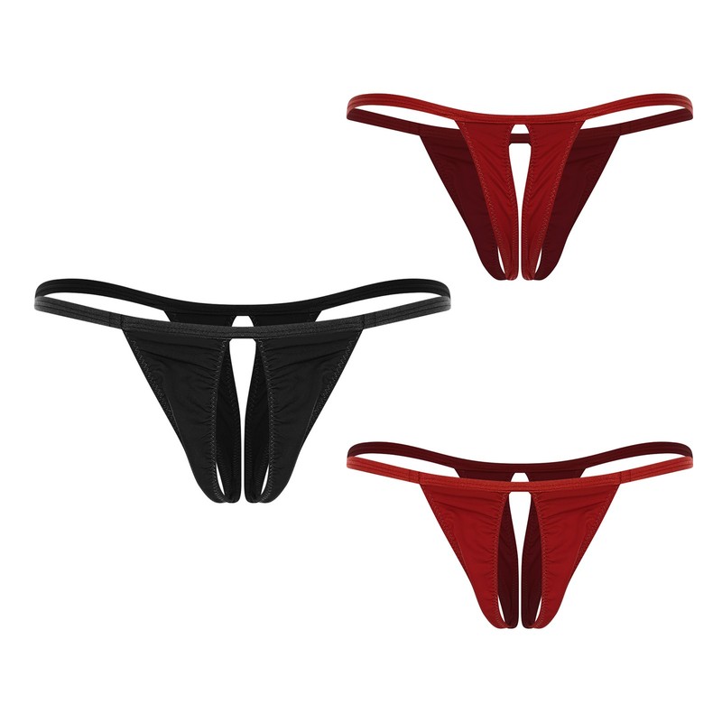 Mens See-Through Lace Briefs Bowknot Strappy Crotchless Underpants.