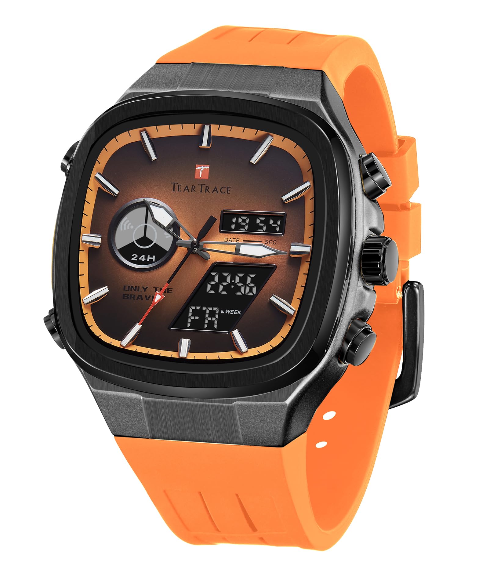 TEARTRACE Men’s Watches Analog Digital Quartz Waterproof Sport Orange