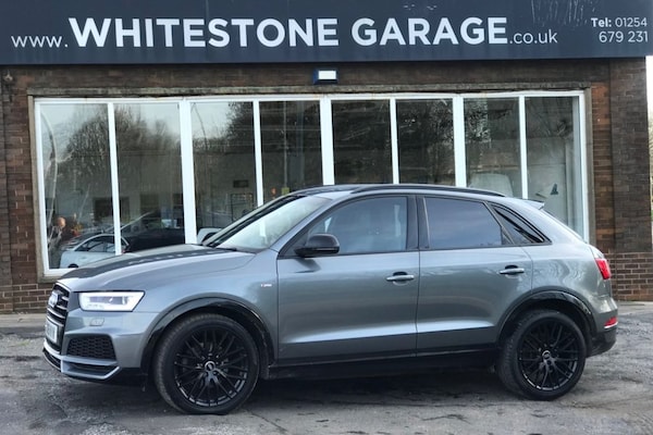 Black Edition S-Line Automatic Quattro, serviced by Audi at 13/24/33/43/60 and 73000 miles a lovely Q3 that has sat nav, front and rear parking sensors, cruise control, climate control, BOSE Sound, power tailgate, drive select, supplied with 2 keys and all of its original bookpacks in excellent condition and a great drive All of our cars are carefully chosen and come fully inspected, serviced,valeted, HPI clear and with a free 12month AA membership and a full years advisory free MOT prior to collection, We are well established and have been operating out of our main road showroom with the same management team since 1981 so you know that if you purchase a car from us we will still be here in the future if you need us unlike many dealers who look good on a website but will be gone if you have a problem. A vast amount of sales is repeat business and recommendations. Our customer service speaks for itself. We are here to sell you and your family and friends cars for many years to come. We do not have high pressure salesmen as we believe our cars sell themselves but all of our staff have a minimum of 40 years motor trade experience mostly with Whitestone Garage, nobody here will be trying to sell you extended warranties or get you to sign up as soon as you walk through the door..4-Way Electric Lumbar Support for Front Seats, 6.5in Colour Display Screen, AMI - Audi Music Interface, Anti Theft Locking Wheel Bolts, Anti-Theft Alarm, Audi Drive Select, Audi Hill Hold Assist, Audi Parking System Plus, Auto-Dimming Rear-View Mirror, Black Roof Rails, Black Styling Pack with Black Roof Rails, Bluetooth Interface, BOSE Surround Sound System, Chrome-Plated Trims for Exhaust Tailpipes, Cloth Headlining in Black, Concert Radio, Cruise Control, DAB Digital Radio, Door Mirrors - Heated-Electrically Adjustable-Folding, Driver - Front Passenger - Front Side and Head Airbag System, Drivers Information System - DIS - 3.5in - Monochrome Display, Dual-Zone Electronic Climate Control, Electric Windows - Front, Electromechanical Parking Brake, Electromechanical Power Steering - Speed-Sensitive Provides a Precise Steering Feel at High Speeds and Excellent Assistance when Parking., ESC - Electronic Stabilisation Control inc ABS - ASR and EDL, Extendable Luggage Compartment Cover, First Aid Kit and Warning Triangle, Flat-Bottomed 3-Spoke Perforated Leather-Trimmed Multifunction Steering Wheel-Contrast Stitching with Paddles, Front and Rear Floor Mats, Front and Rear Fog Lights, Front Centre Armrest, Front Lip and Rear Diffuser in Full Paint Finish - Diffuser Insert Painted Platinum Grey, Full Body-colour Paint Finish with Front and Rear Bumpers - Wheel Arch Trims and Lower Door Trims in Gloss Black, Gear Knob - Perforated Leather, Gloss Black Door Mirrors, Gloss Black Rear Spoiler, Inlays - Piano Finish - Black, ISOFIX Child Seat Mounting and Top Tether, LED Headlights with LED Rear Lights and Dynamic Rear Indicators, LED Interior Light Package, Light and Rain Sensor, Manual Seat Adjustment, Monsoon Grey, Pedals in Stainless Steel, Power Operated Tailgate, Privacy Glass, Remote Central Locking, Reversible Luggage Compartment Floor, S Line Badges on Front Wings, S Line Sports Suspension, Satellite Navigation System - SD Card Based, Seat Belt Monitoring, Secondary Collision Brake Assist, Space Saver Spare Wheel, Split-Folding Rear Seats, Stainless Steel Loading Sill Protector, Steering Wheel - Height and Reach Adjustable, Tool Kit and Car Jack, Tyre Pressure Loss Indicator, Voice Control System, Windscreen with Acoustic Glazing