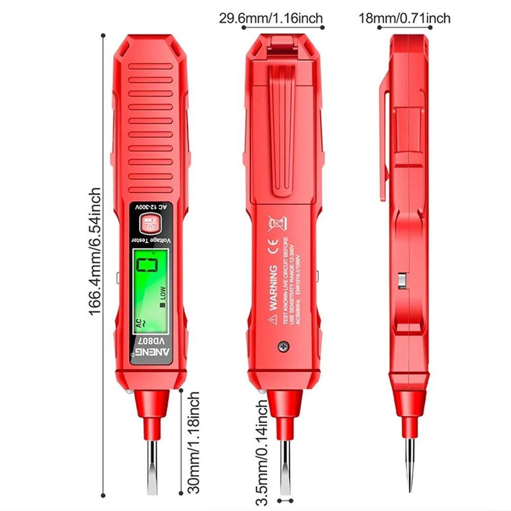 Wechselspannungsprüfer: Entworfen, um Wechselspannung von 12-300V zu erkennen, um umfassende Testmöglichkeiten zu gewährleisten.
