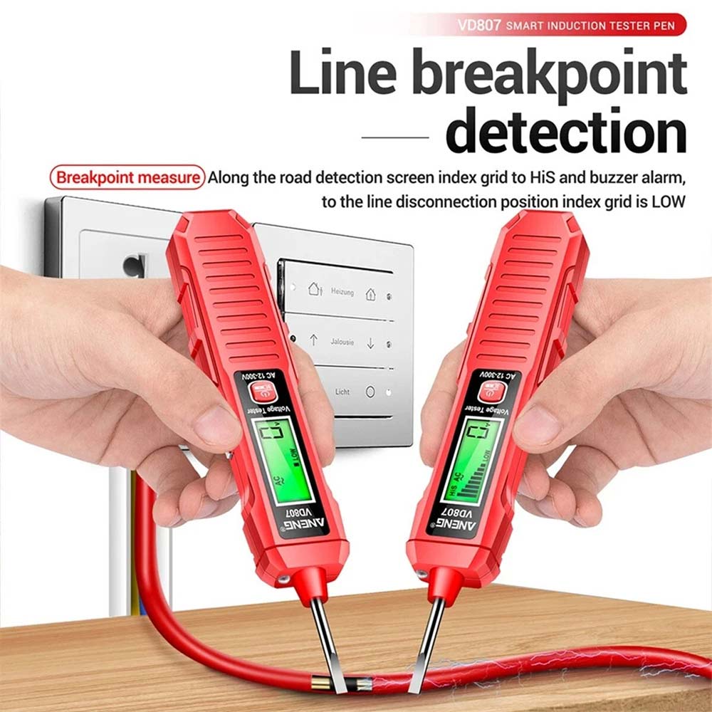 Verbessern Sie Ihre elektrischen Prüfmöglichkeiten mit dem Smart Induction Tester Pen, einem vielseitigen Werkzeug für professionelle Elektriker und DIY-Enthusiasten. Dieser fortschrittliche Tester-Stift verfügt über modernste Technologie und mehrere Funktionen, um elektrische Testaufgaben zu vereinfachen. Hier sind die wichtigsten Merkmale: