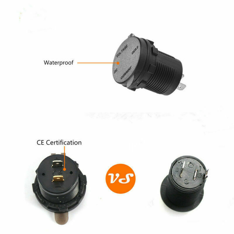 Waterproof QC3.0 USB Charger Voltmeter Amp Volt Meter For Car Truck Boat