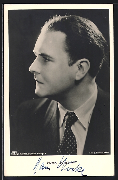 AK Opernsänger Hans Wocke im Anzug, mit original Autograph