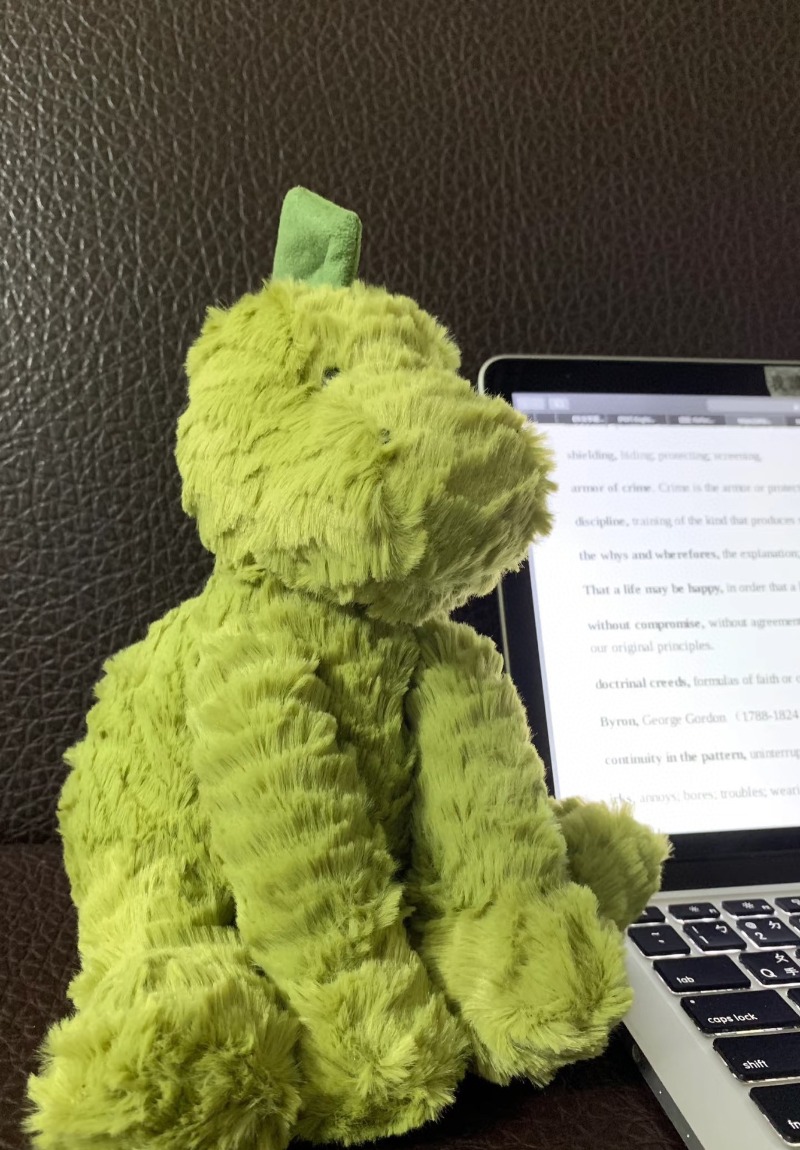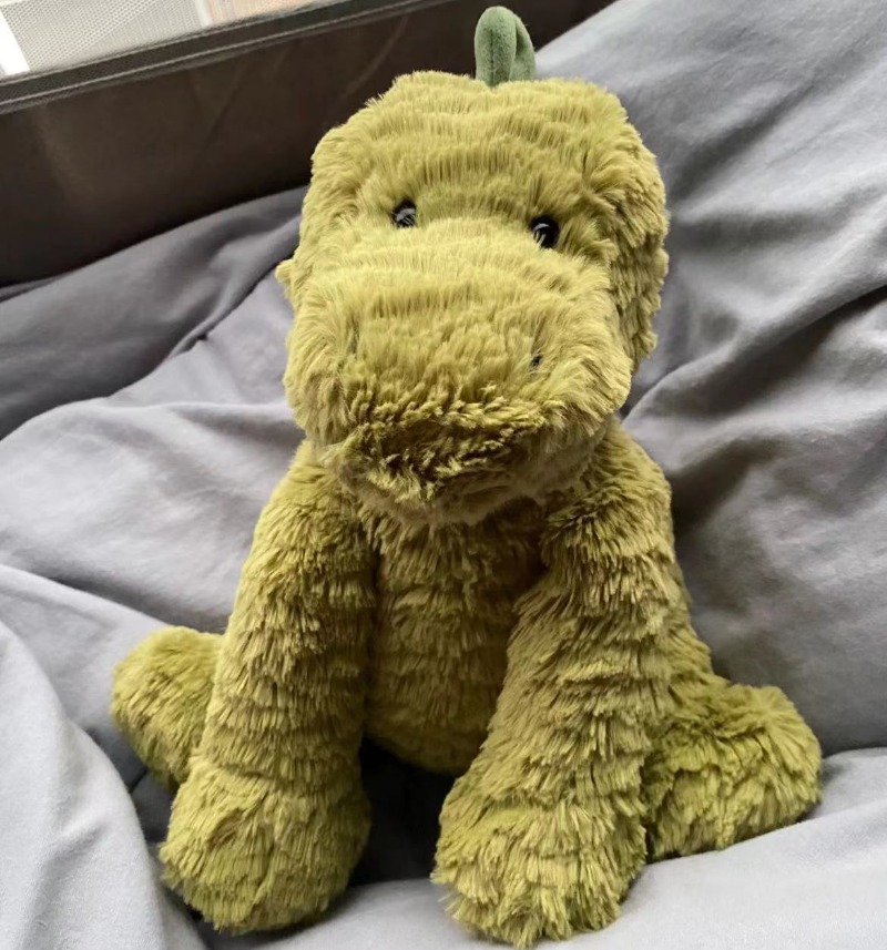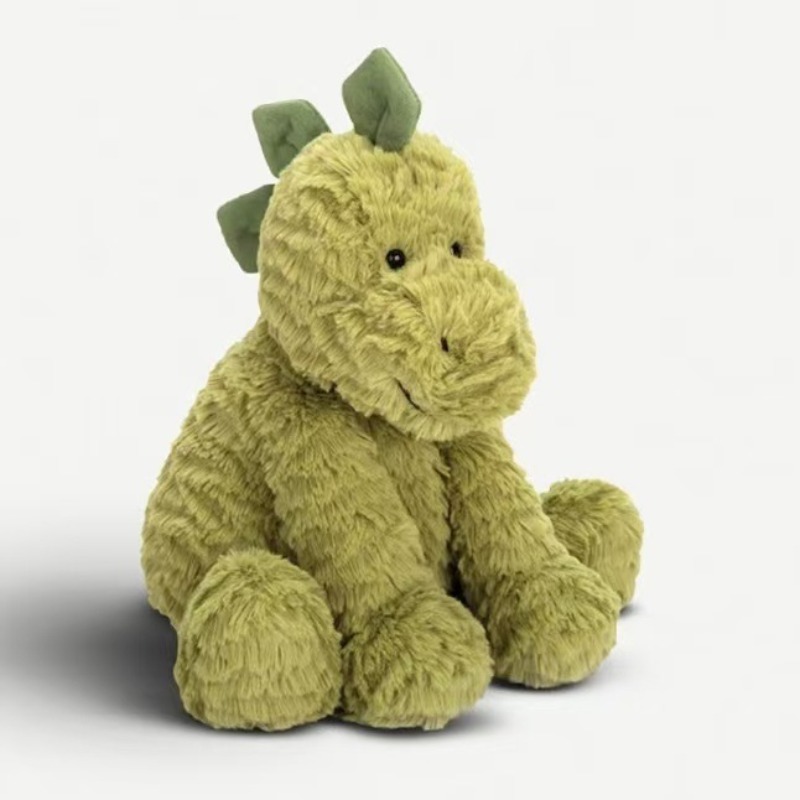 A dinosaur with snuggly scales? What a funny sight! Fuddlewuddle Dino is a very special chap, with scruffly fur in apple green. His very fine spines are suedey-soft and he simply loves to be tickled. Make friends with this dino by feeding him grass - he's a prehistoric veggie sweetie!