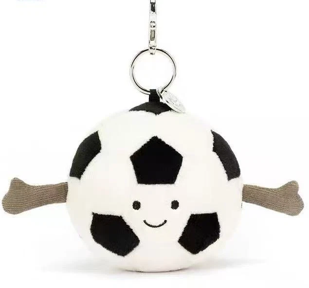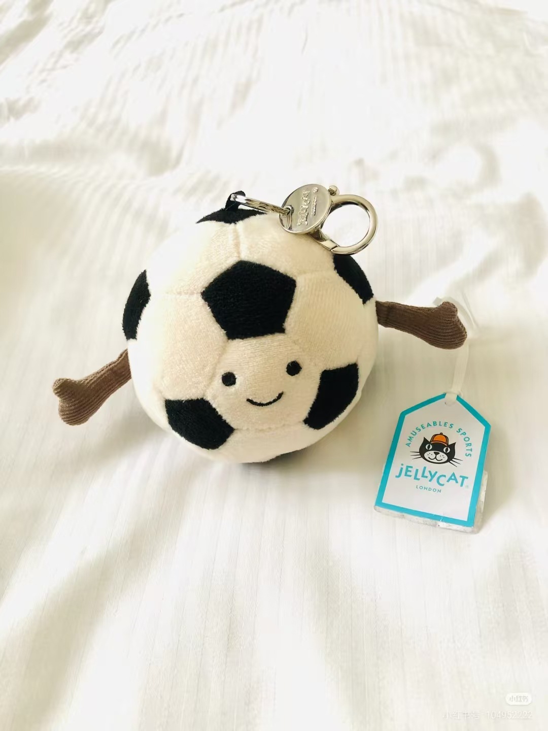Show off your love for soccer with the Jellycat Amuseables Soccer Ball Bag Charm! This cute, plush keychain features a playful soccer ball design, making it a perfect accessory for soccer enthusiasts or anyone who enjoys unique and charming accessories. Made from Jellycat’s signature soft fabric, it’s the ideal way to add a fun touch to your bag, backpack, or keys. A must-have for sports fans and collectors alike!