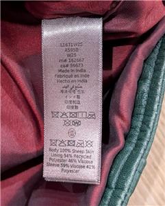 Body: 100% sheep skin ; lining: 54% polyester/46% viscose; sleeve lining: 59% viscose/41% polyester