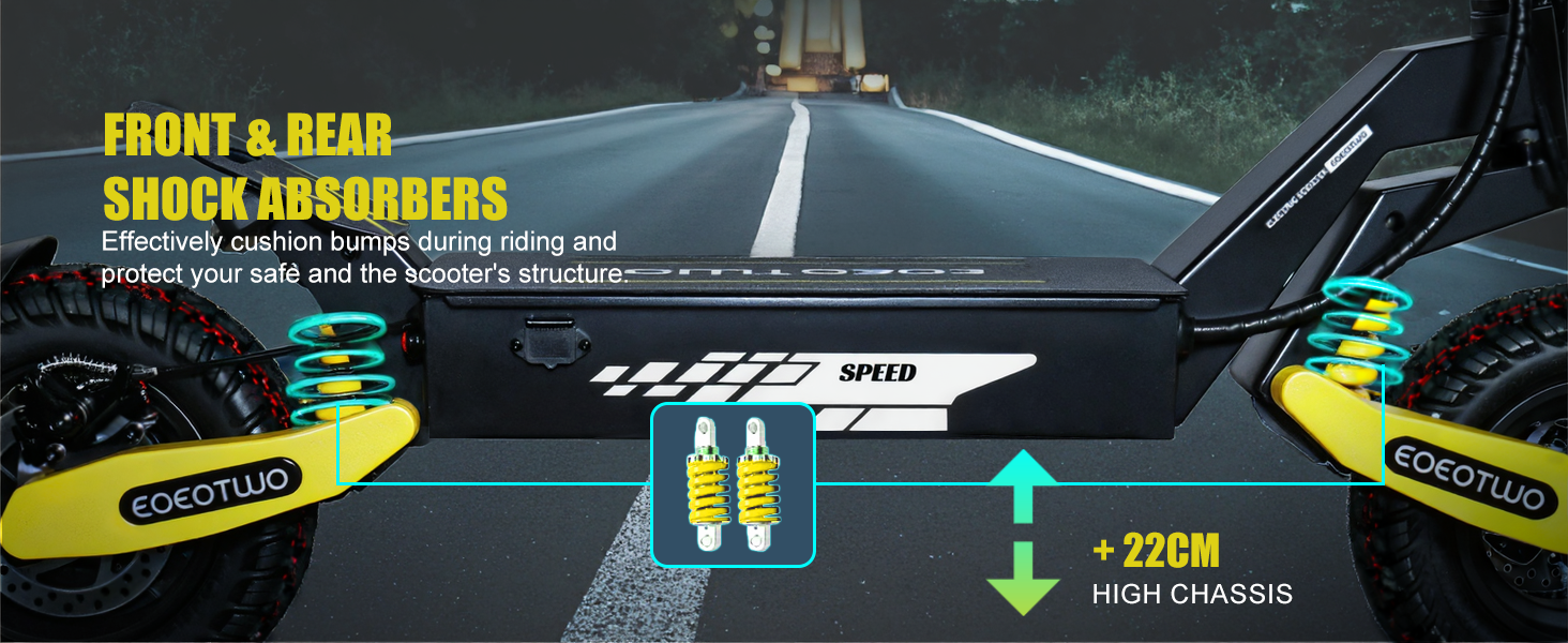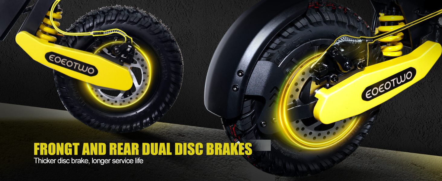 All-Terrain Tires: Dual 11" off-road pneumatic tires grip gravel/mud securely, with enhanced wet-road traction