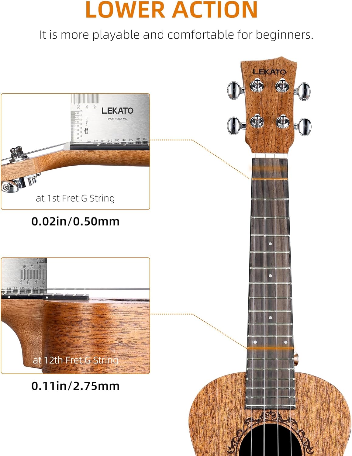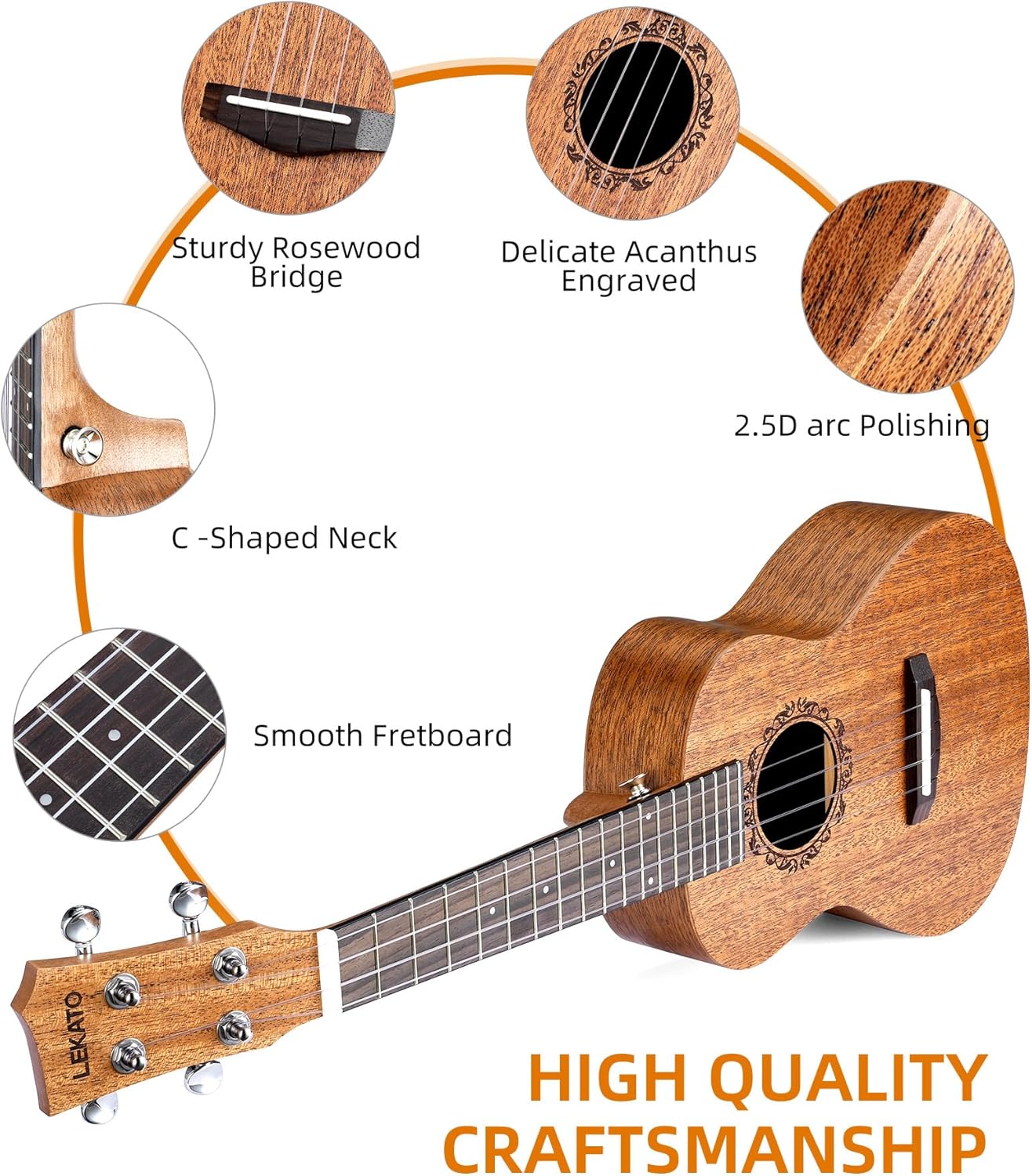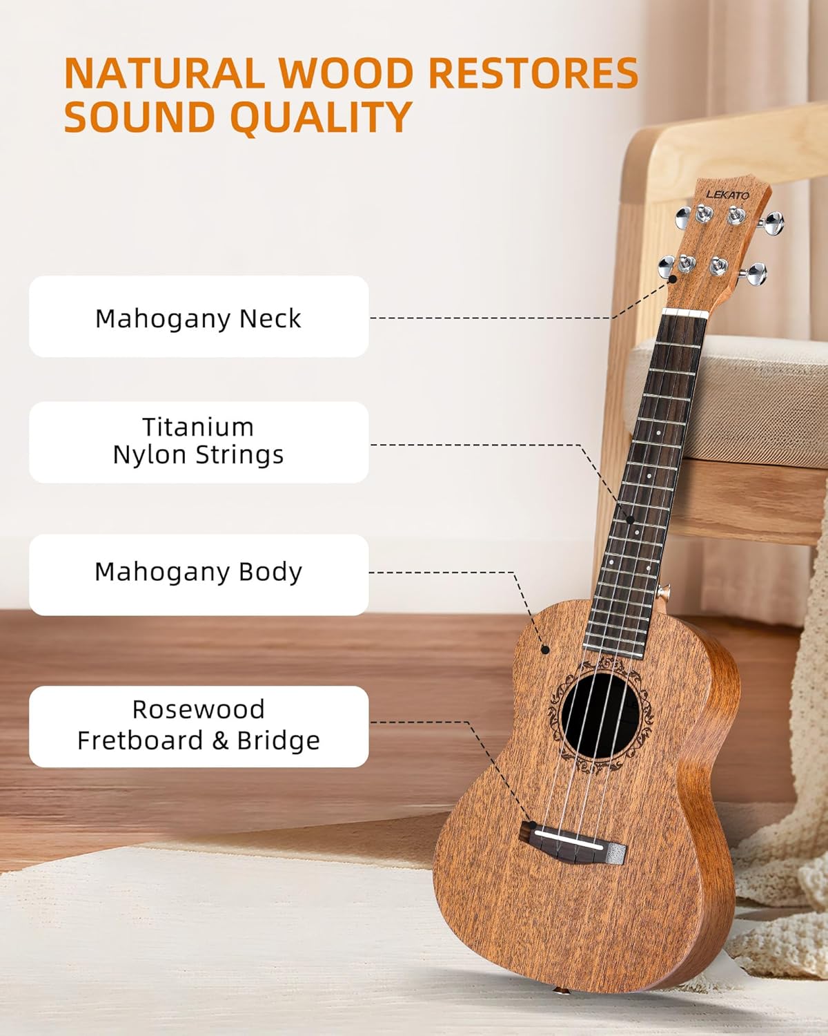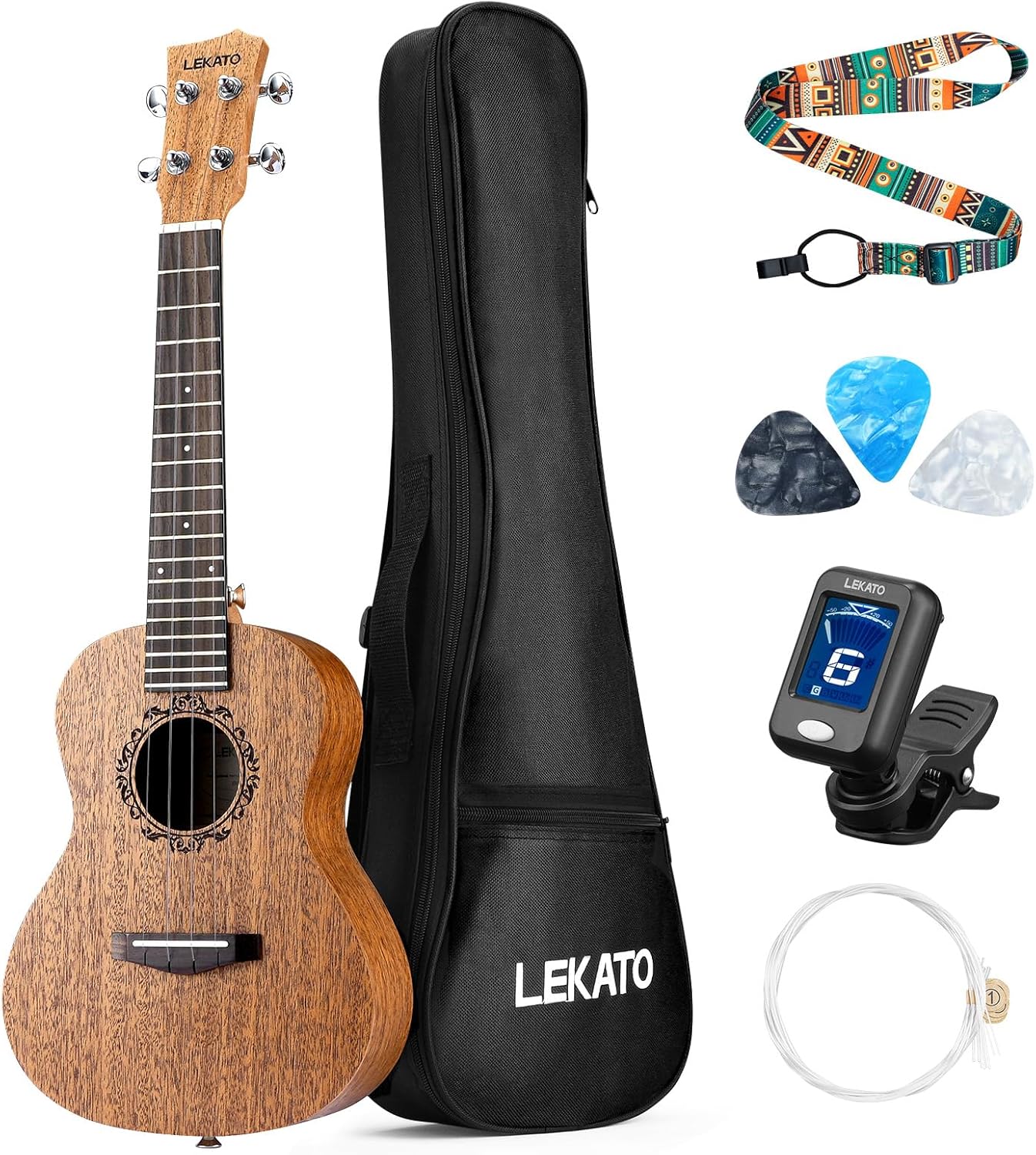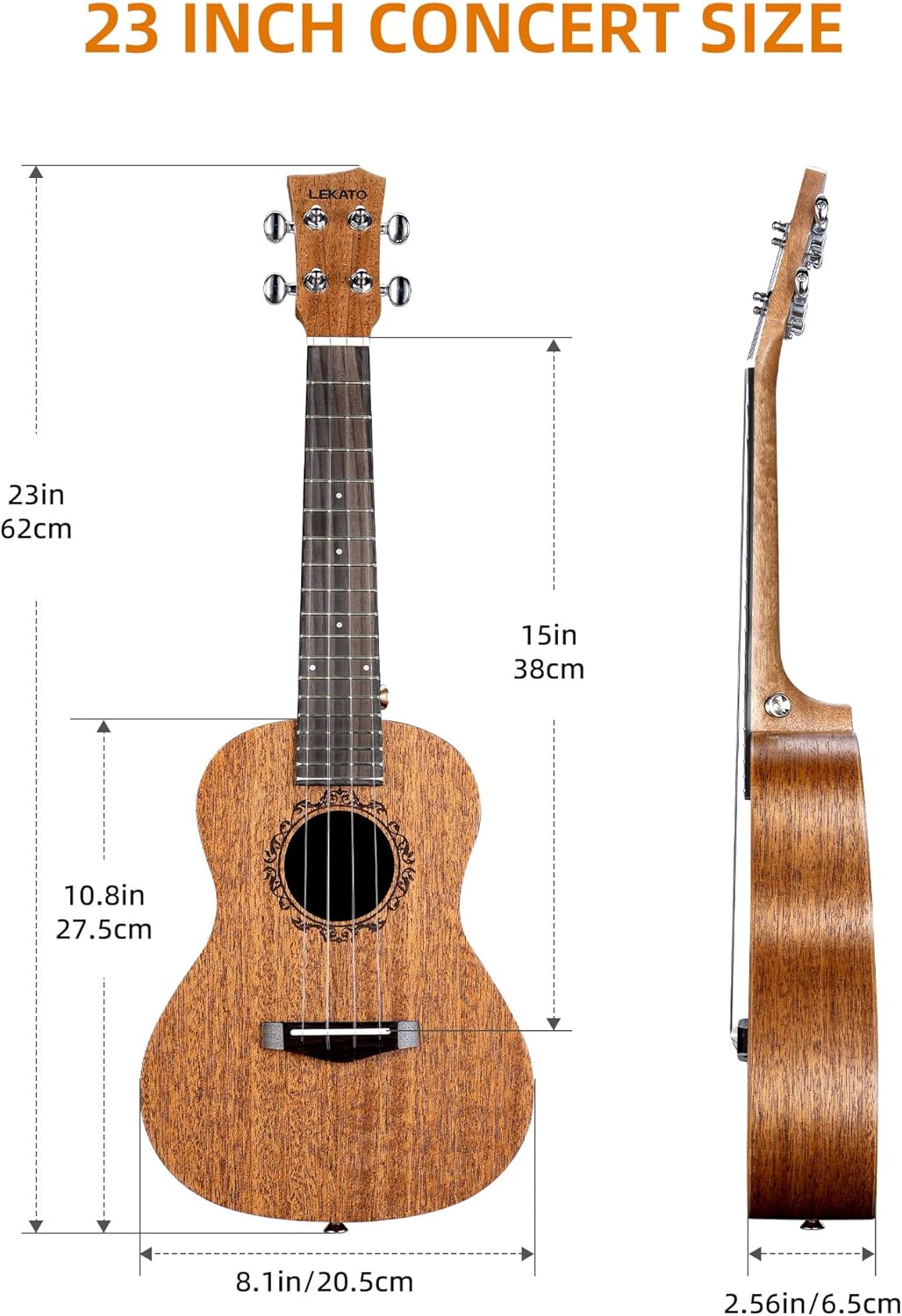 Professional 23" Mahogany Concert Ukulele Starter Kit, Wood Uke Full Set w/Tuner