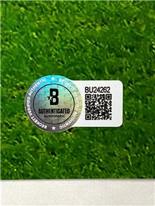 The autograph is authenticated by Beckett and includes their tamper-proof serial-numbered hologram with a QR-code that verifies authenticity in the online database.