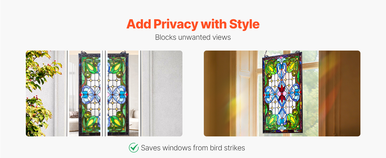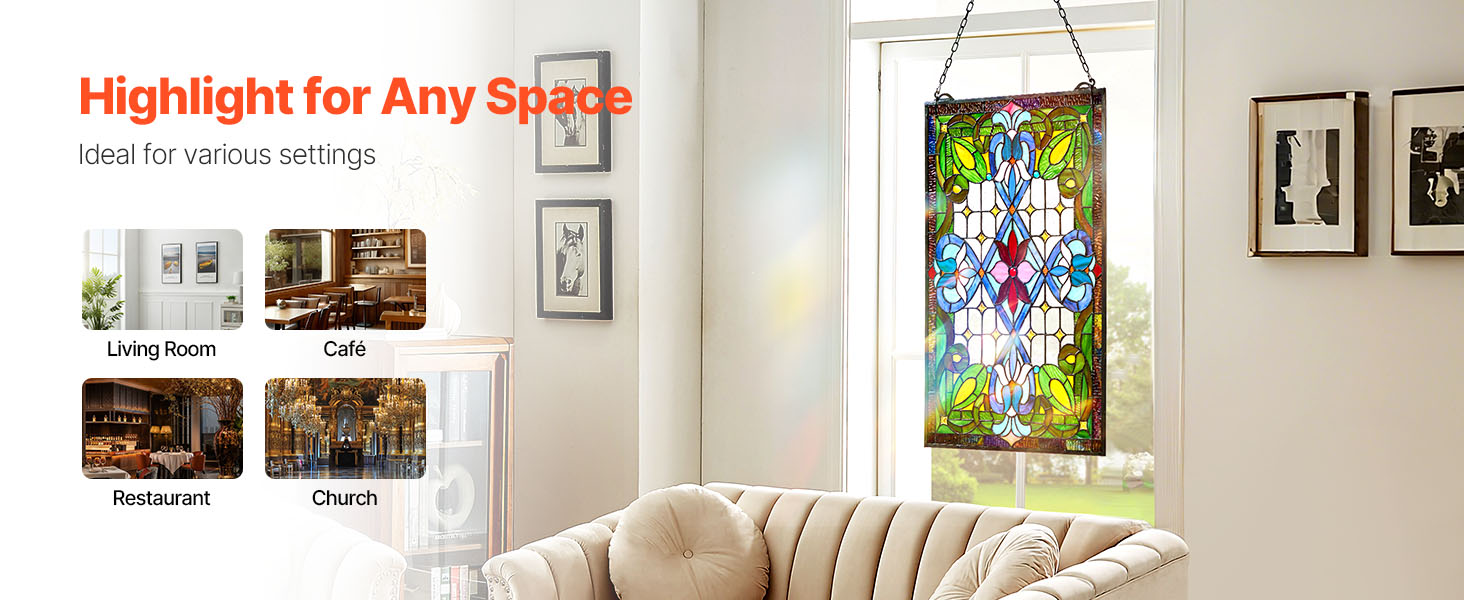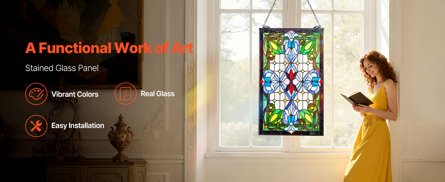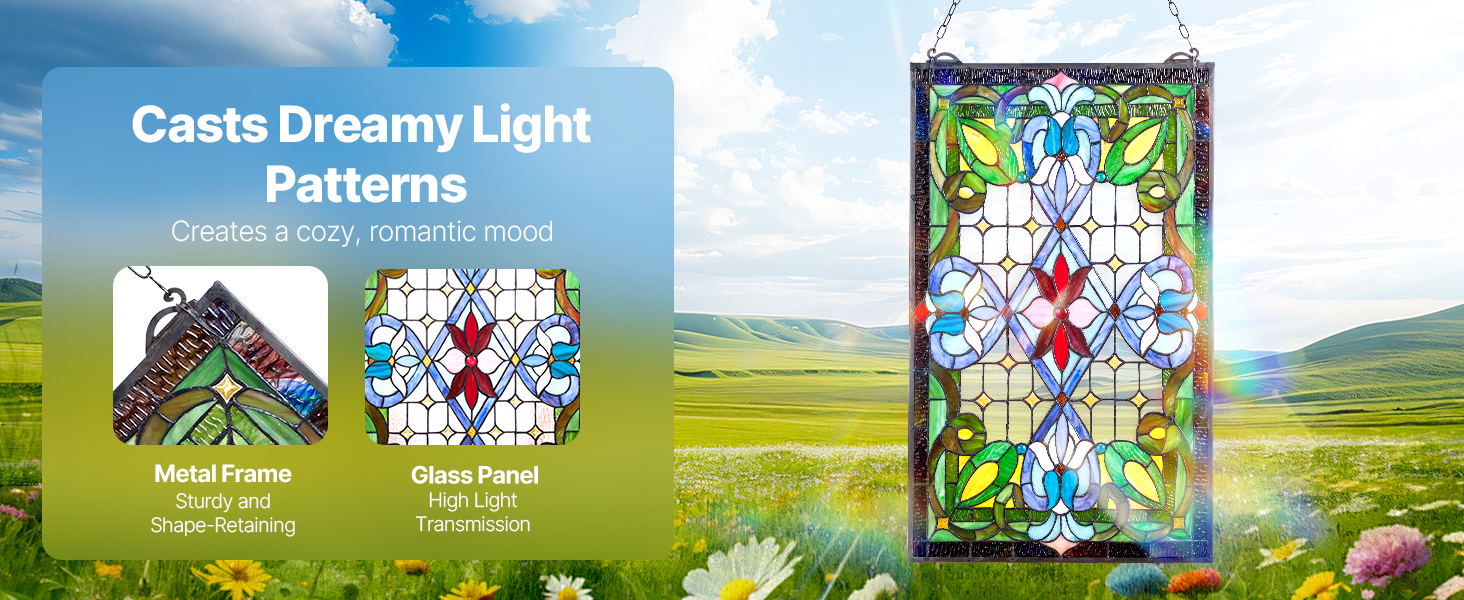 This stained glass window panel is a versatile piece of art that combines functionality with beauty. Crafted from vibrant, durable glass, it is perfect for enhancing windows, walls, or cozy spaces, bringing a touch of artistic elegance to any setting.