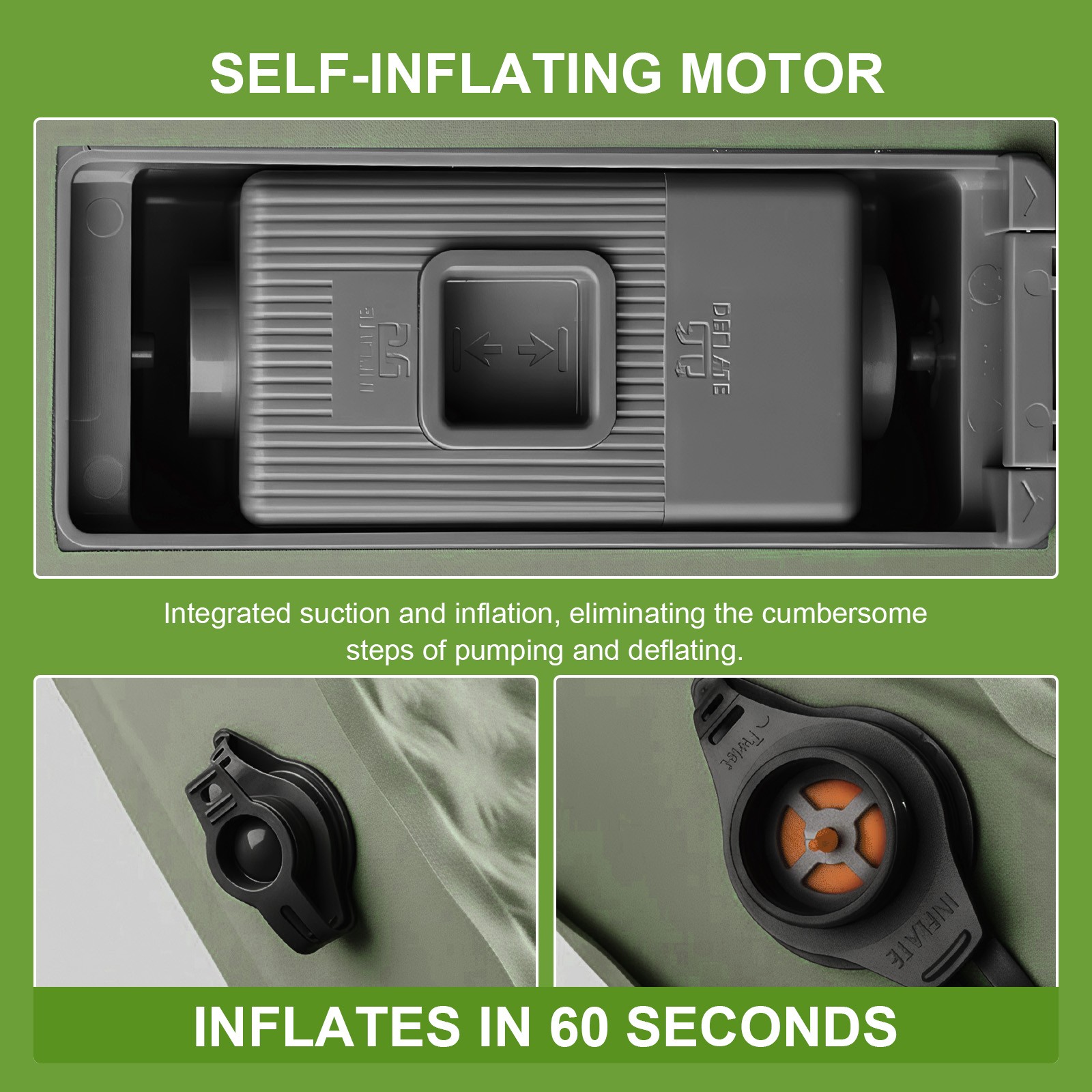 3.Quick Pack-Up in 40 Seconds: The automatic inflatable mat features a powerful pump for rapid air extraction, allowing you to pack up within 40 seconds. Its compact design reduces storage volume by 50% compared to traditional air mattresses for easy transport.