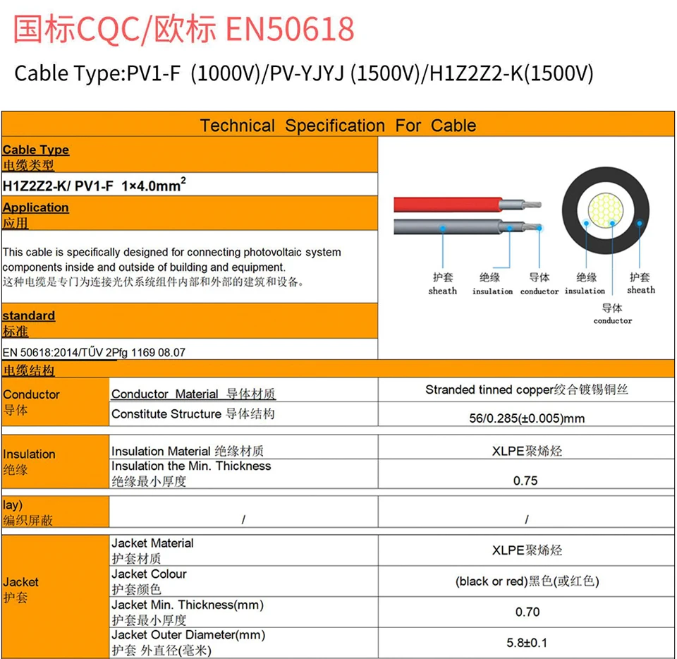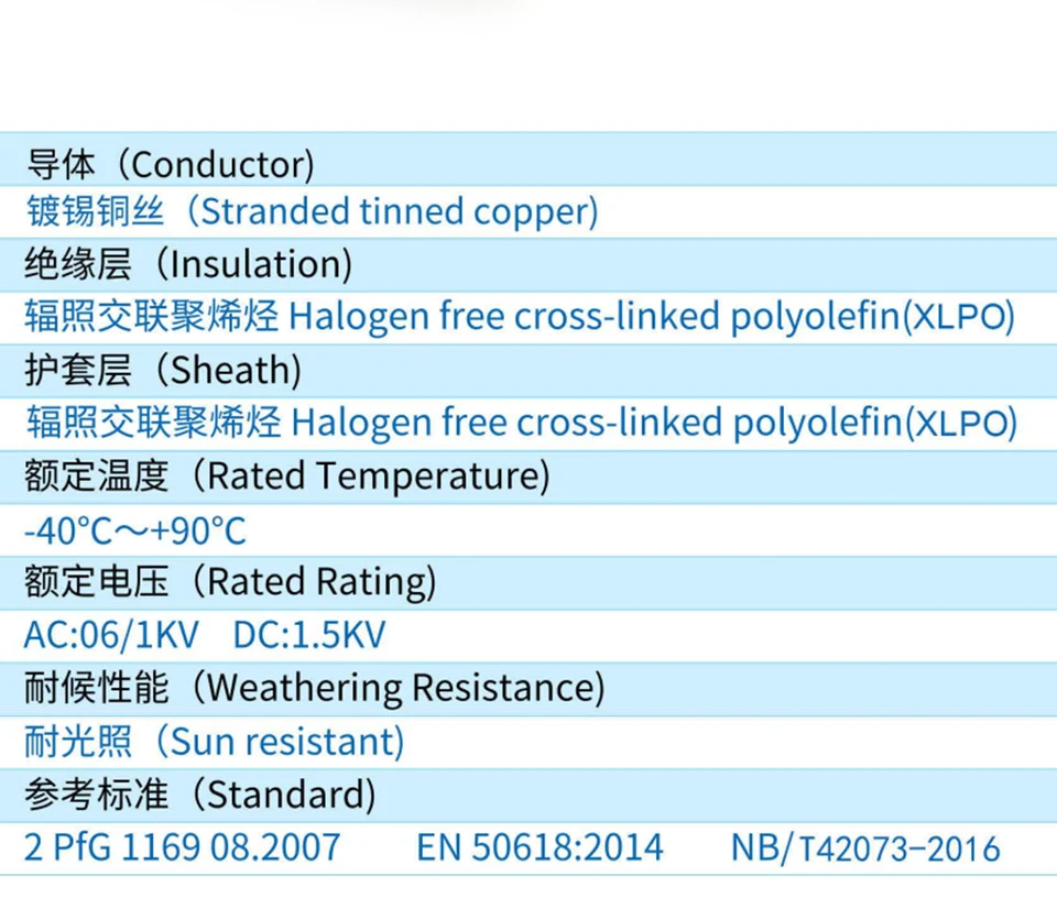 1. Cable Standard: 6mm/4mm/2.5mm(10AWG/12AWG/14AWG)