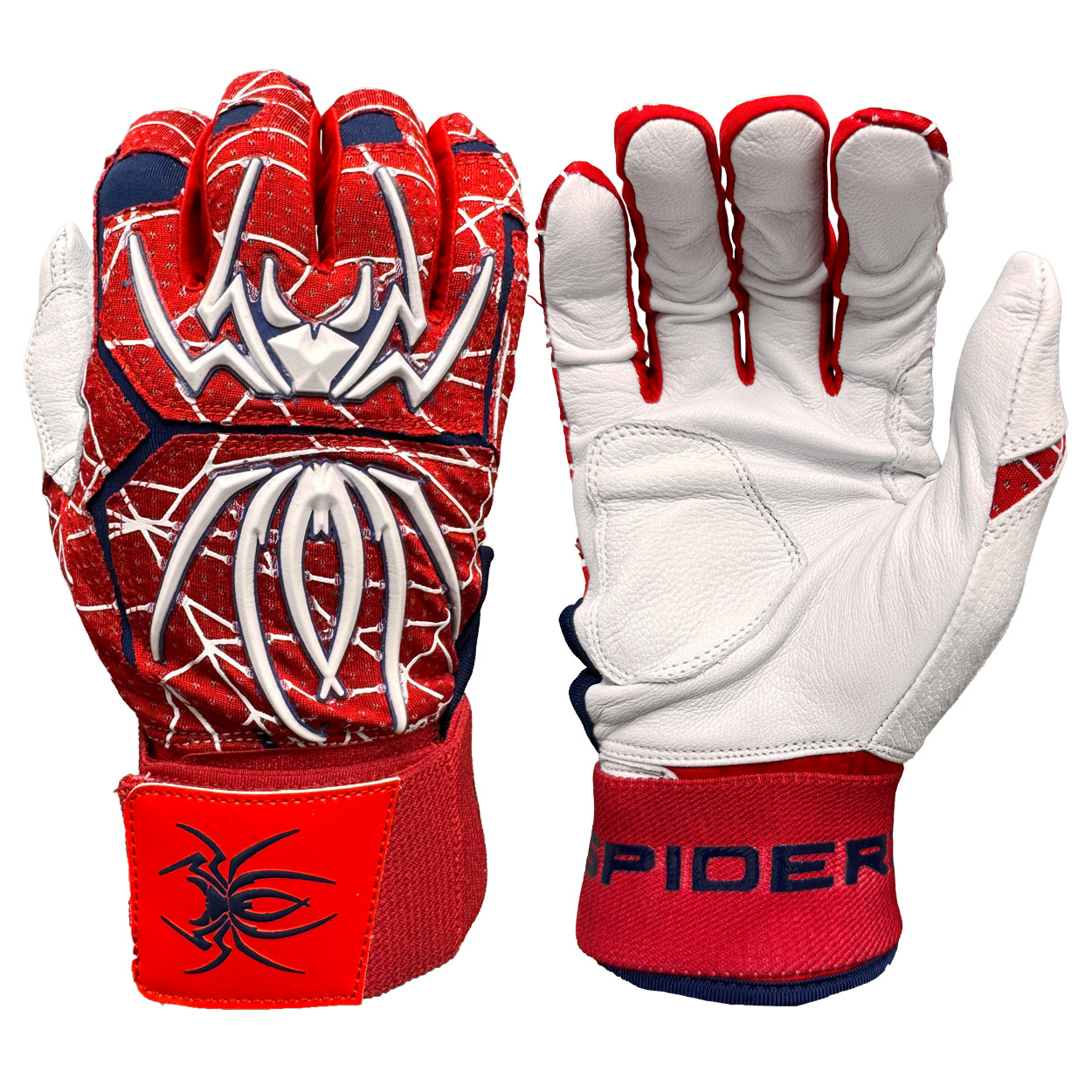 The all new ENDITE X batting gloves from Spiderz feature a long wrist cuff with long and wide, wrap-around strap for support and a smooth leather palm.