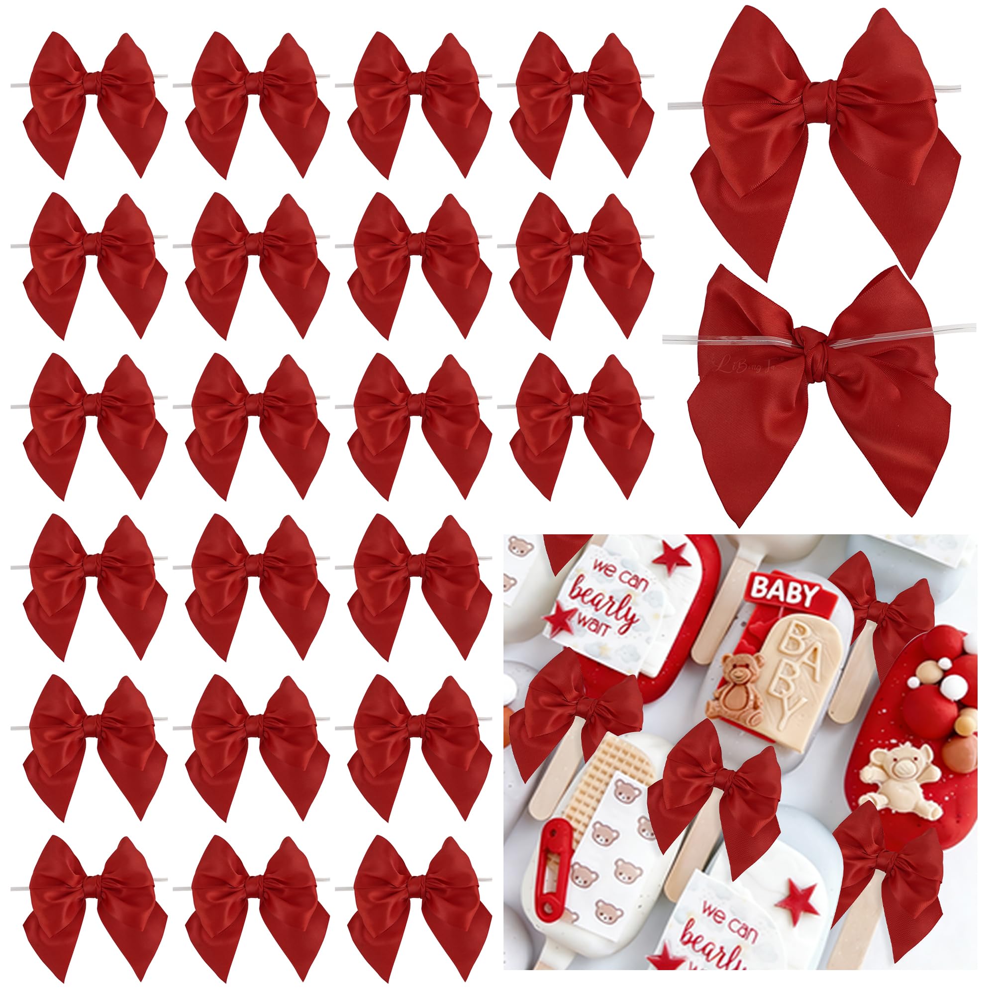 - 24-Piece Value Set: The package includes 24 pieces of 4 inch red satin bows with twist ties, neatly packed in an elegant paper box. This set will easily meet your various needs for decoration or DIY projects