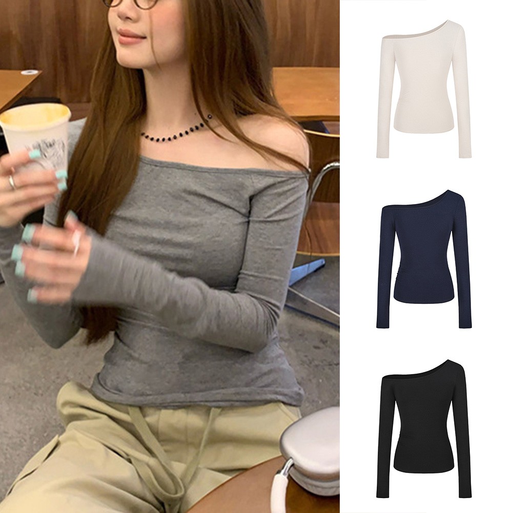 Hot Girl Pure Desire Slim Épaule Dénudée Manches Longues T Shirt pour Femme P