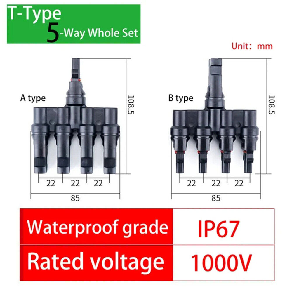 T Typ 3 Zweig Solarpanel Kabel Photovoltaik-Steckverbinder MFFF FMMM IP67
