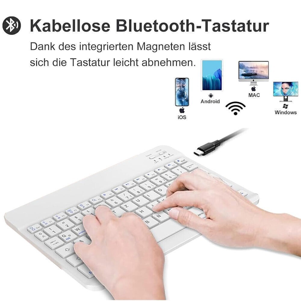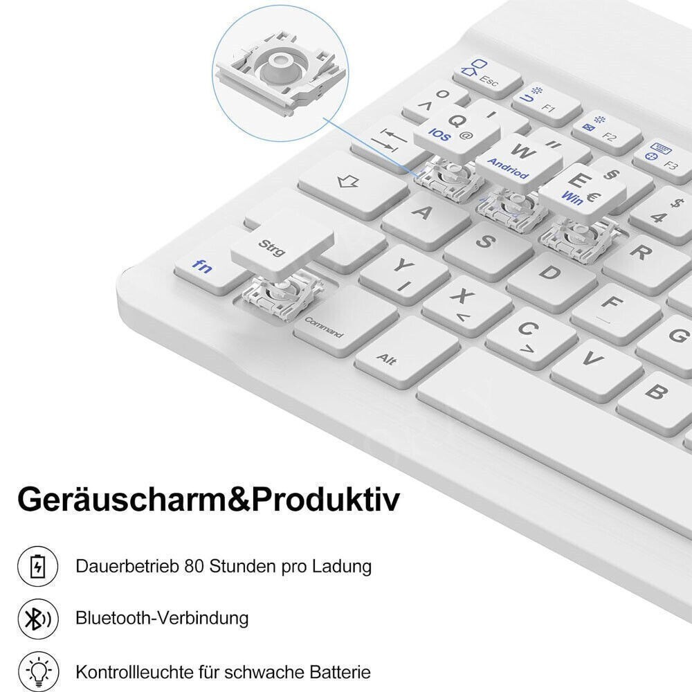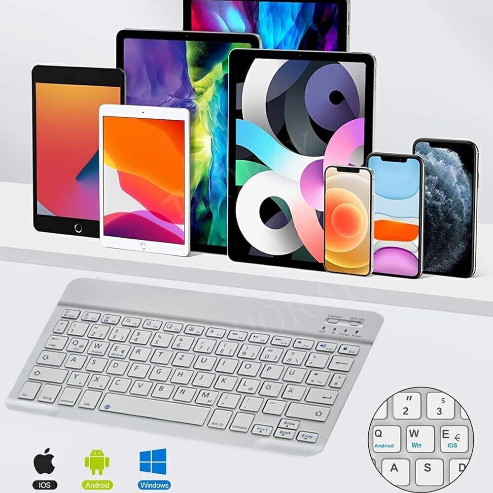 【Kompatibilität】 Diese kabellose Tastatur ist kompatibel mit iPad, PC, Smartphone, Windows, Android, MacOS, Tablets, geeignet für iPad Pro 11 Zoll, iPad Pro 12,9 Zoll, iPad Air 5. Generation/iPad Air 4. Generation 10,9 Zoll, iPad 9. / 8./ 7. Generation 10,2 Zoll, iPad 5./ 6. Generation 9,7 Zoll, iPad Mini und andere intelligente elektronische Geräte.