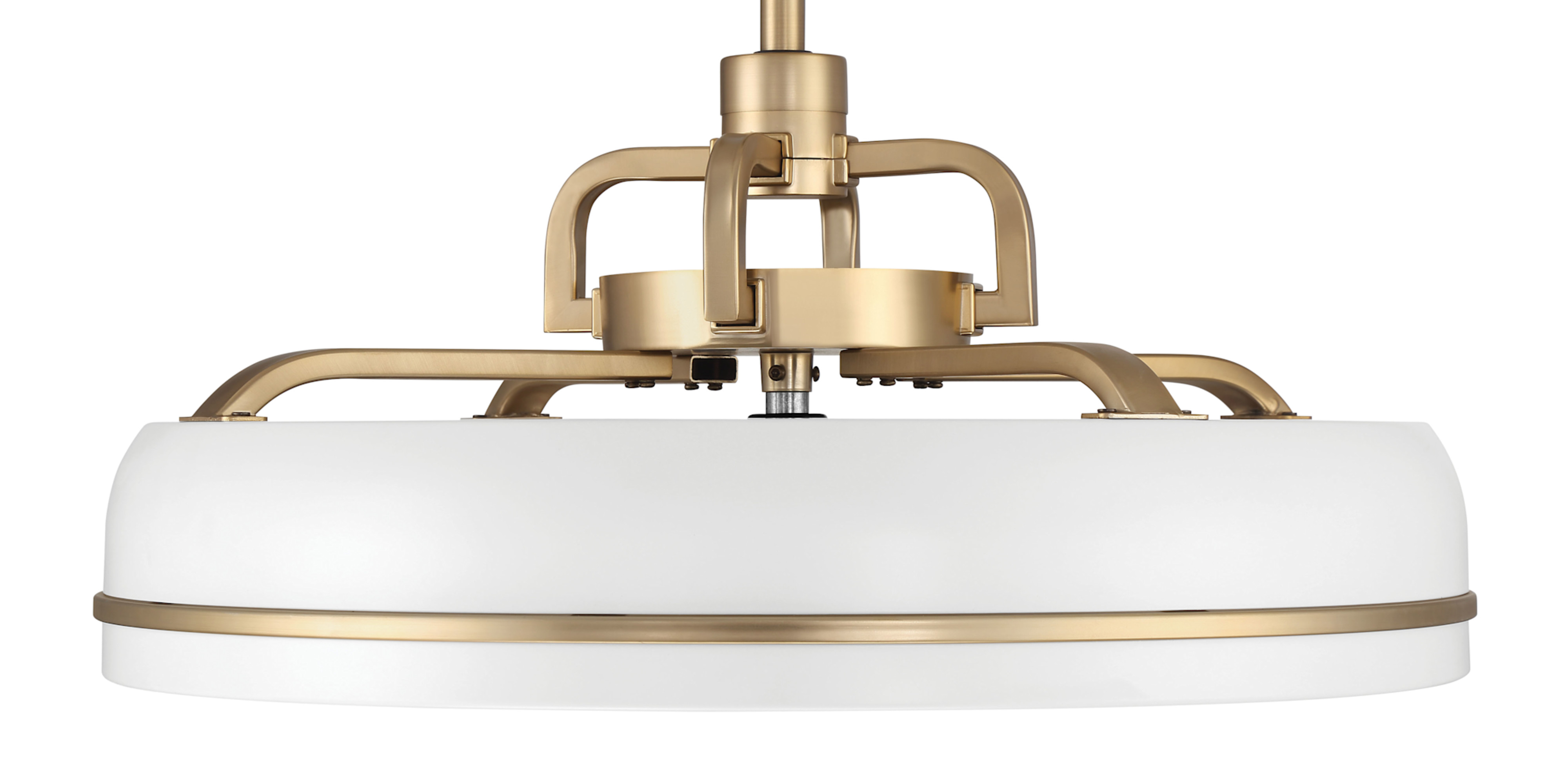 Item DescriptionThe Taylor 24" Fandelier by Craftmade blends the beauty of a dome pendant with the performance of an energy-saving, 6-speed reversible DC motor ceiling fan with a set of three custom 20" clear polycarbonate blades ideal where limited space or design requires a unique solution. Additional features include integrated dimmable LED light with an optional lens cover and the convenience of the included remote control.