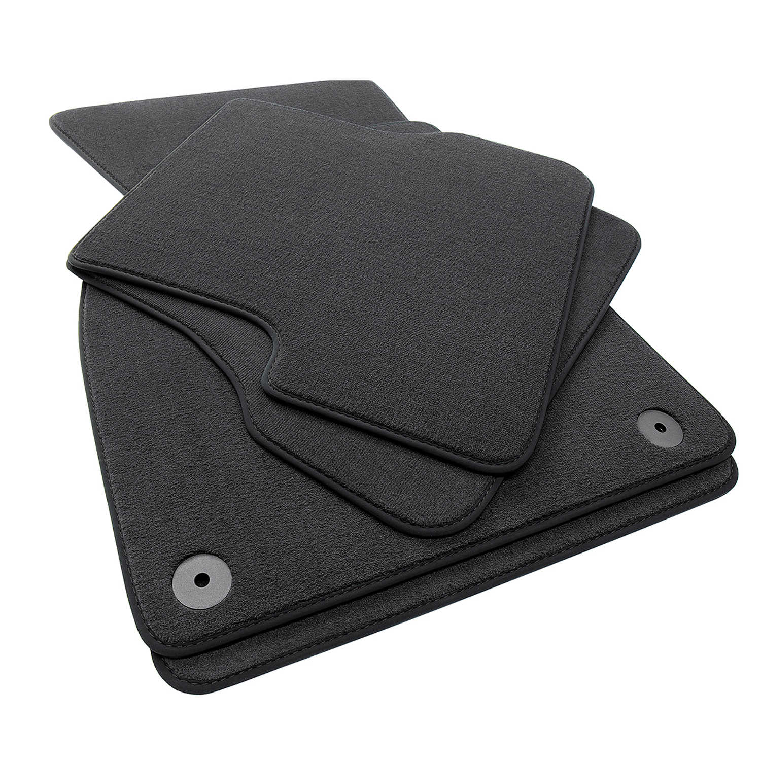 Luxus Fußmatten Komplettset bestehend aus den beiden vorderen Fußmatten mit Befestigungssystem und den beiden hinteren Matten.