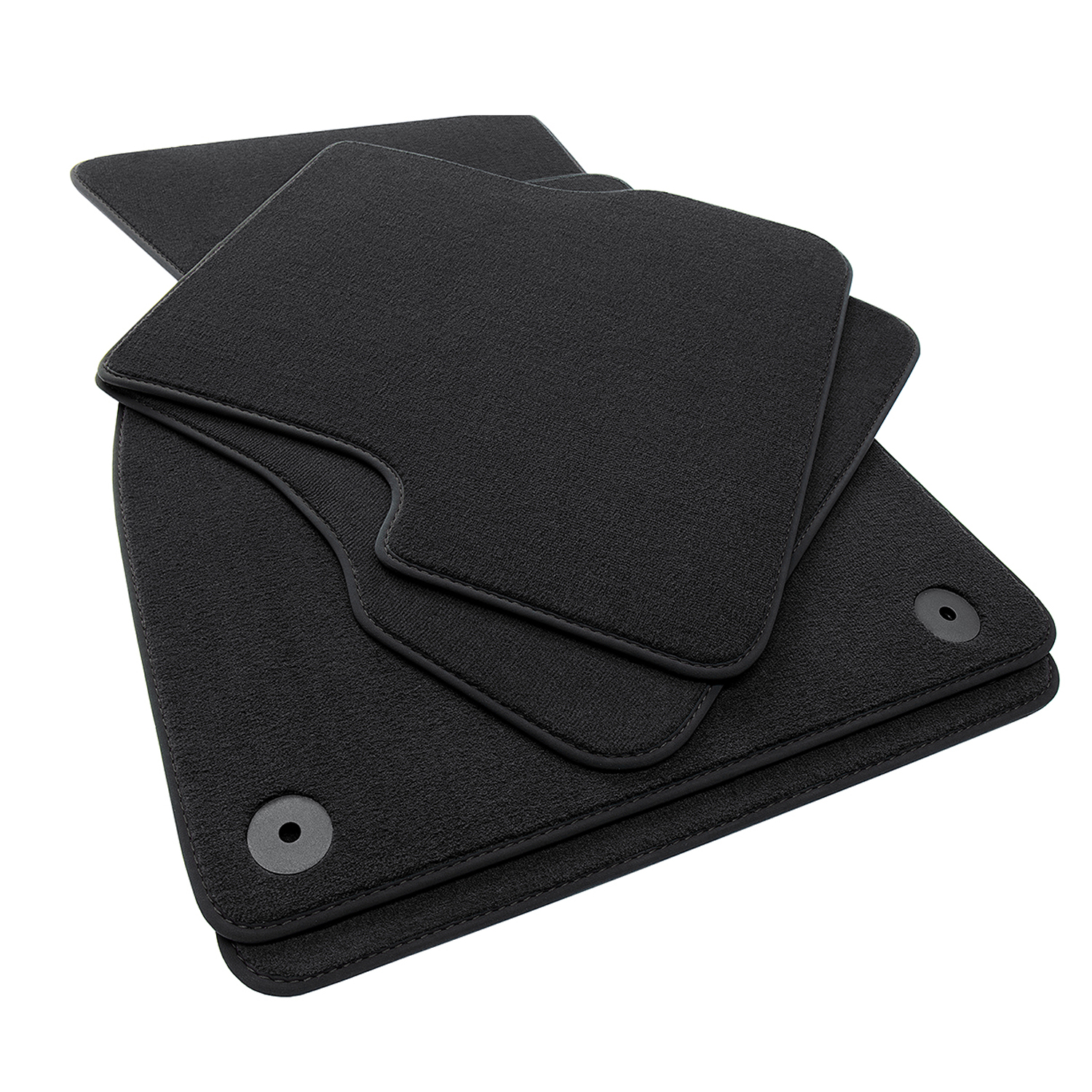 Luxus Fußmatten Komplettset bestehend aus den beiden vorderen Fußmatten mit Befestigungssystem und den beiden hinteren Matten.
