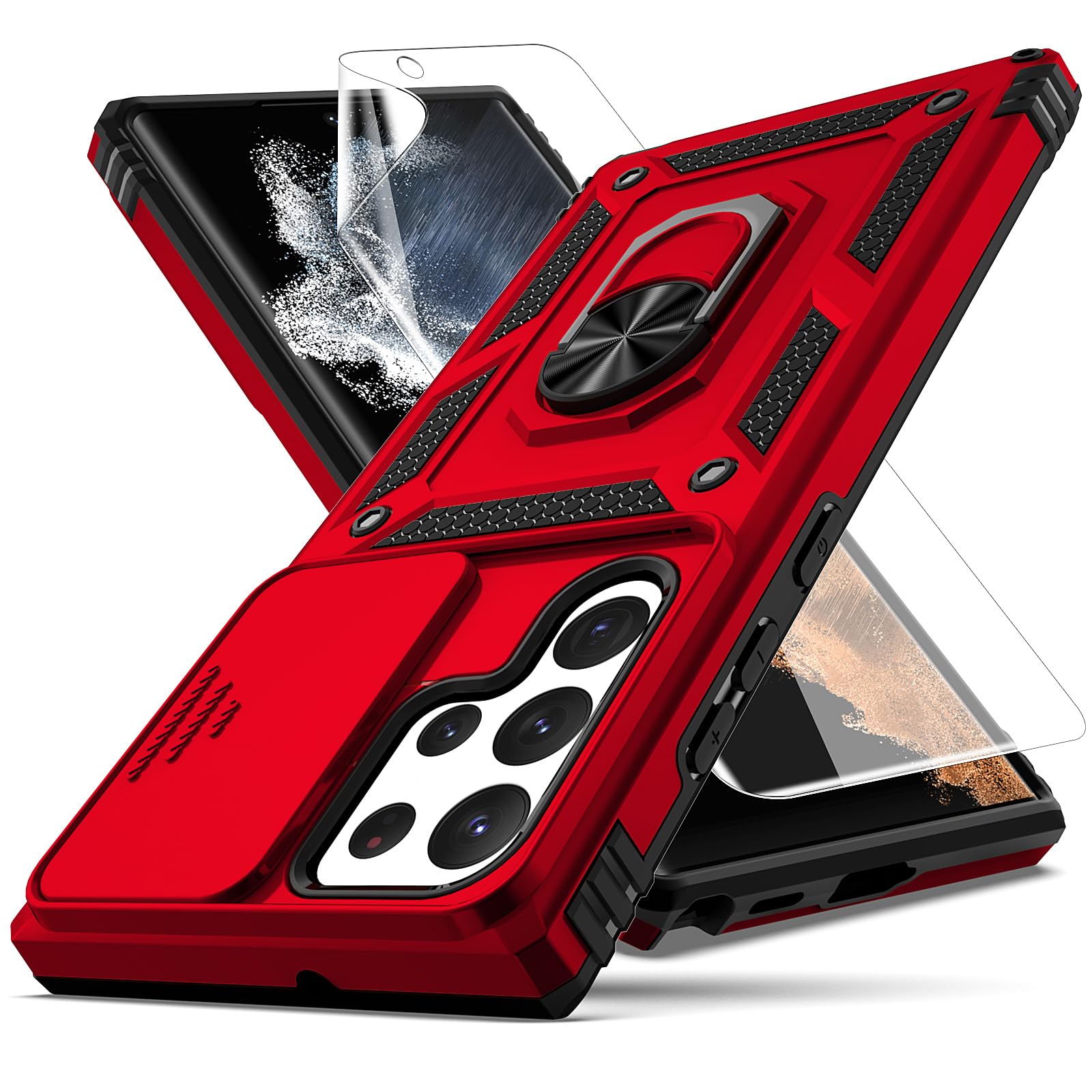 for Samsung Galaxy S22 Ultra Case,with Camera Lens Cover HD Screen Red