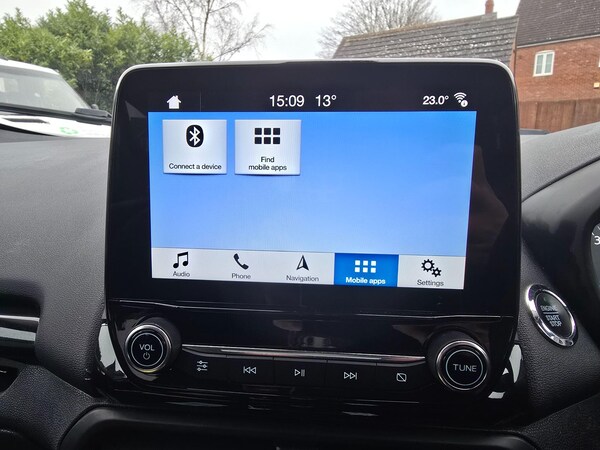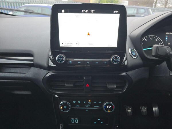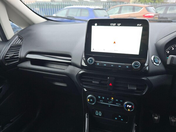 This 2018 Ford EcoSport T ST-Line offers a compelling blend of style and practicality, featuring a 1.0L petrol engine and meeting Euro 6 emission standards. This particular model comes equipped with the Comfort Pack, ensuring cosy journeys with heated seats and a heated steering wheel. Convenience is further enhanced by Ford Keyless Entry and Keyless Start, allowing effortless access and ignition. Parking is made simpler with front parking sensors and a rear view camera complemented by rear parking sensors, providing comprehensive assistance.For your entertainment and connectivity needs, the Ford DAB Navigation System with Ford SYNC3 is included, offering seamless integration with Android Auto and Apple CarPlay, alongside Bluetooth functionality. This EcoSport achieves an impressive fuel economy of 53 mpg, demonstrating its efficiency. Furthermore, its low CO2 emissions highlight its consideration for the environment, making it a sensible choice compared to other vehicles in its class. Comes with 3 months nationwide warranty, Cambelt has been replaced, excellent condition inside and outside, drives excellent