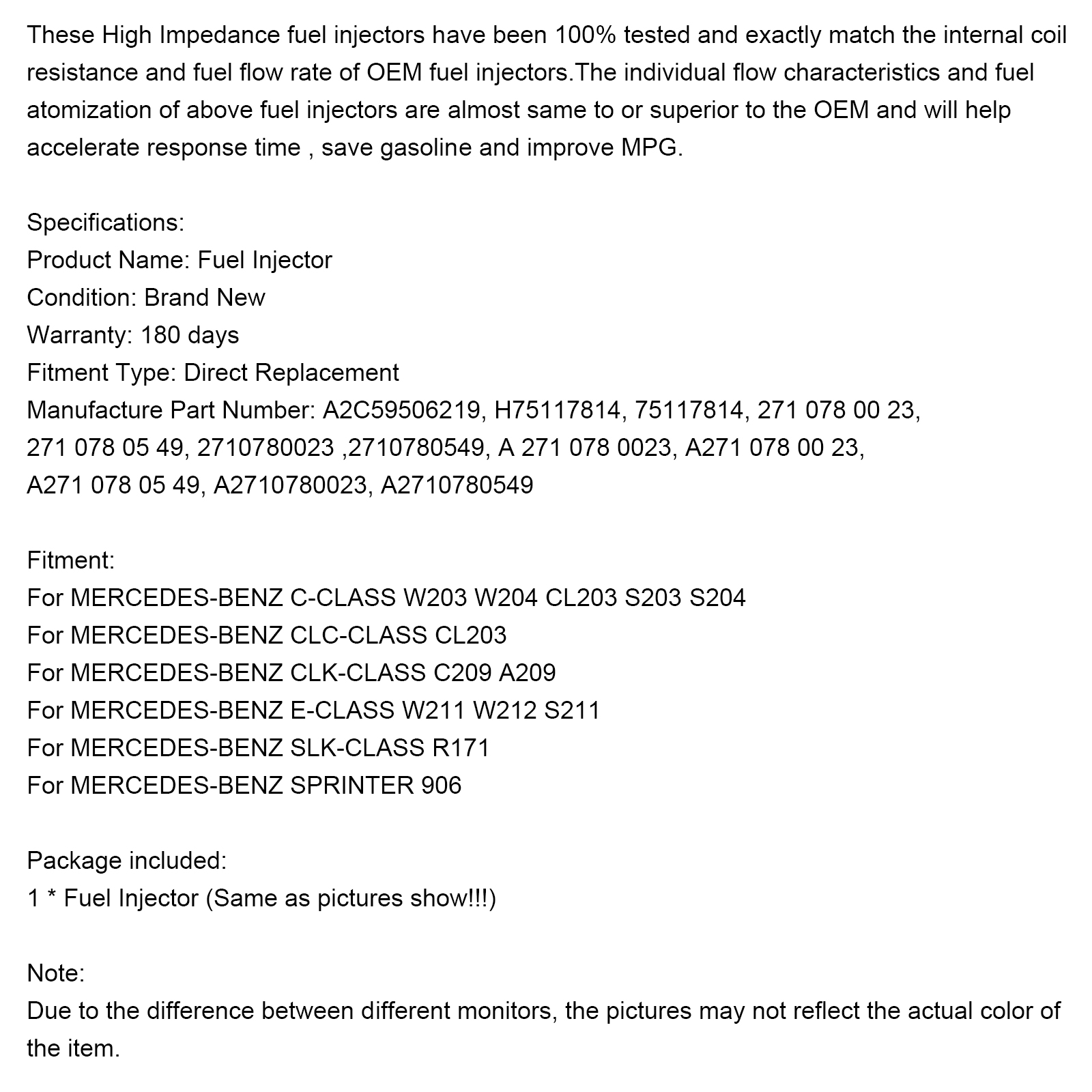 Manufacture Part Number: A2C59506219, H75117814, 75117814, 271 078 00 23, 271 078 05 49, 2710780023 ,2710780549, A 271 078 0023, A271 078 00 23, A271 078 05 49, A2710780023, A2710780549