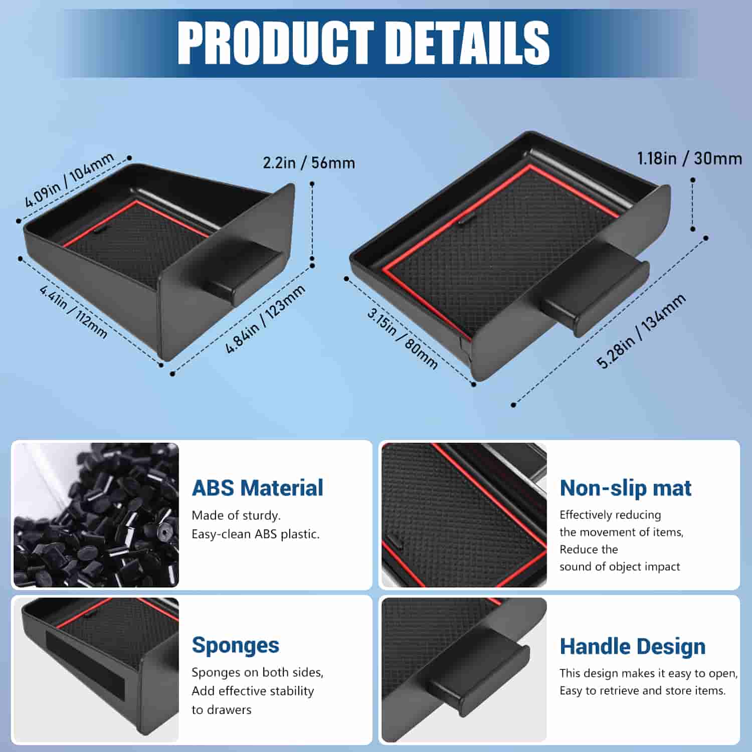 Constructed from premium ABS plastic for long-lasting durability. Foam strips on the sides secure the organizer, preventing loosening or falling out.