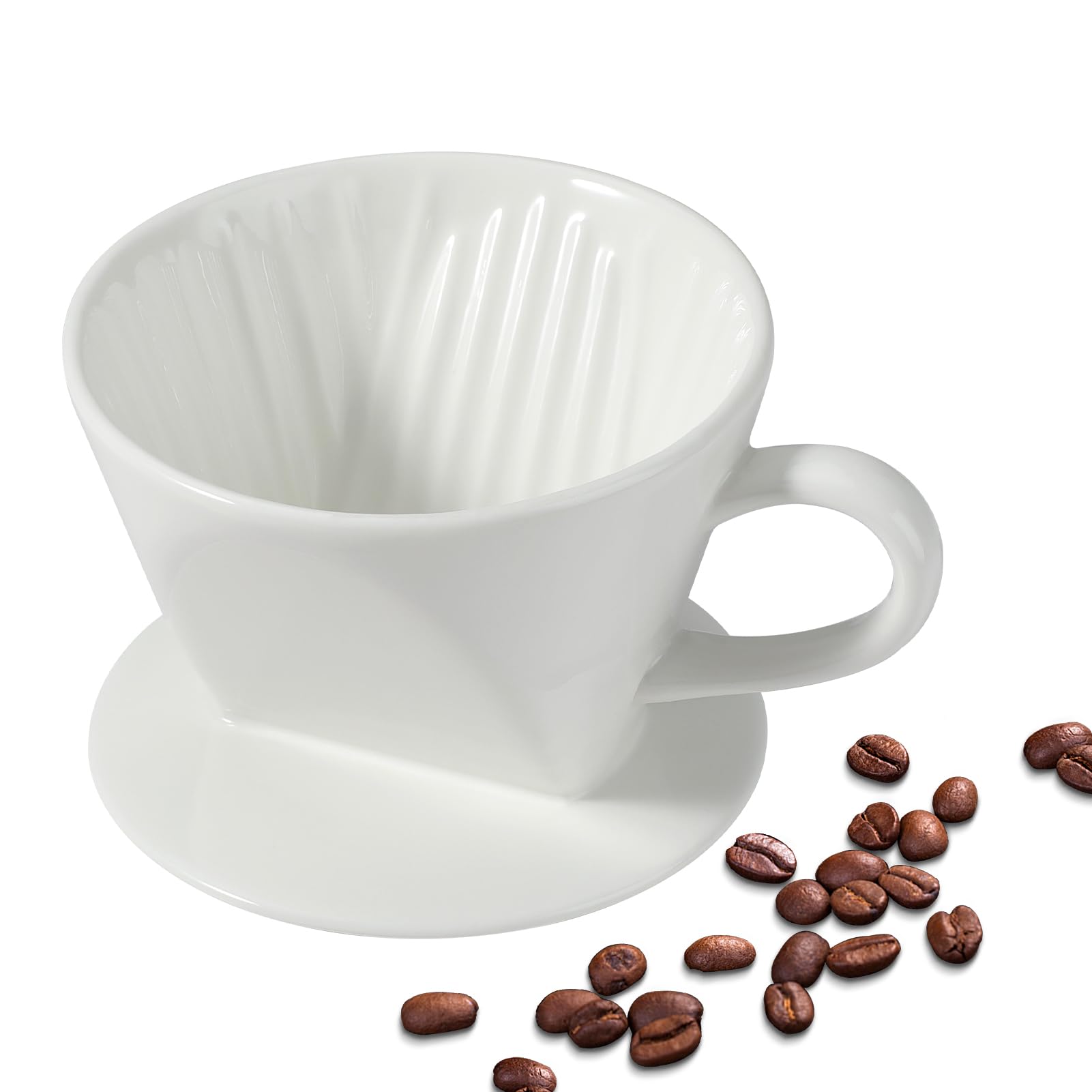 Mongdio Pour Over Coffee Maker, Ceramic Dripper, 02, White 3 holes