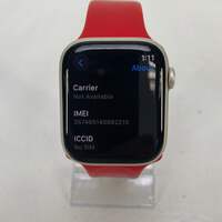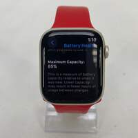 Unlocked Apple Watch Series 8 45MM Starlight Aluminum Red Sport Band MNVQ3LL/A Items included in this sale: Unlocked Apple Watch Series 8 45MM Starlight Aluminum Red Sport Band MNVQ3LL/A *Please note, if it is not listed it is not included - such as power cables or other accessories. Specifications: Collection Apple Watch Brand Apple Model Watch Series 8 MPN MNVQ3LL/A Series Apple Watch Series 8 Case Size 45MM Case Material Aluminum Color Starlight Connectivity Unlocked Band Color and Type Red Sport Band Band Size S/M Band Material Silicone Battery Health N/A Compatible Operating System iOS - Apple WatchOS Version 11.6.2 Condition Good UPC Serial# GGQY95T2R3 IMEI 357485140882210 MFG Warranty? No Cosmetic condition: This Apple Watch is in good cosmetic condition. The face and glass show no major wear or scratches, and the band is in good condition with minor wear. Please view our close up photos, as these are taken of the actual item being offered for sale. Functionality condition: This Apple Watch has been tested and is fully functional. The touch screen, Wi‑Fi, buttons, digital crown, speakers, vibration function, and LCD all work properly with no issues.