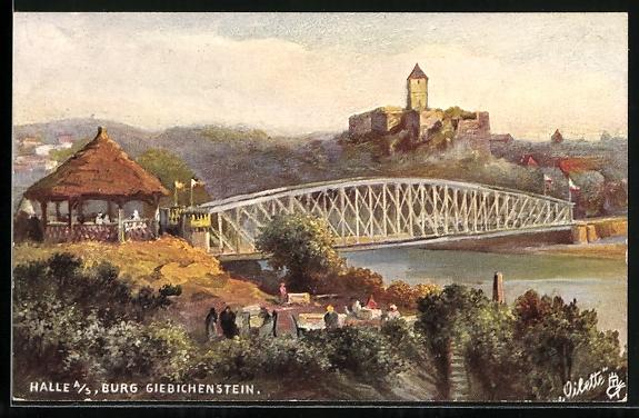 AK Halle a. d. Saale, Burg Giebichenstein mit Brücke