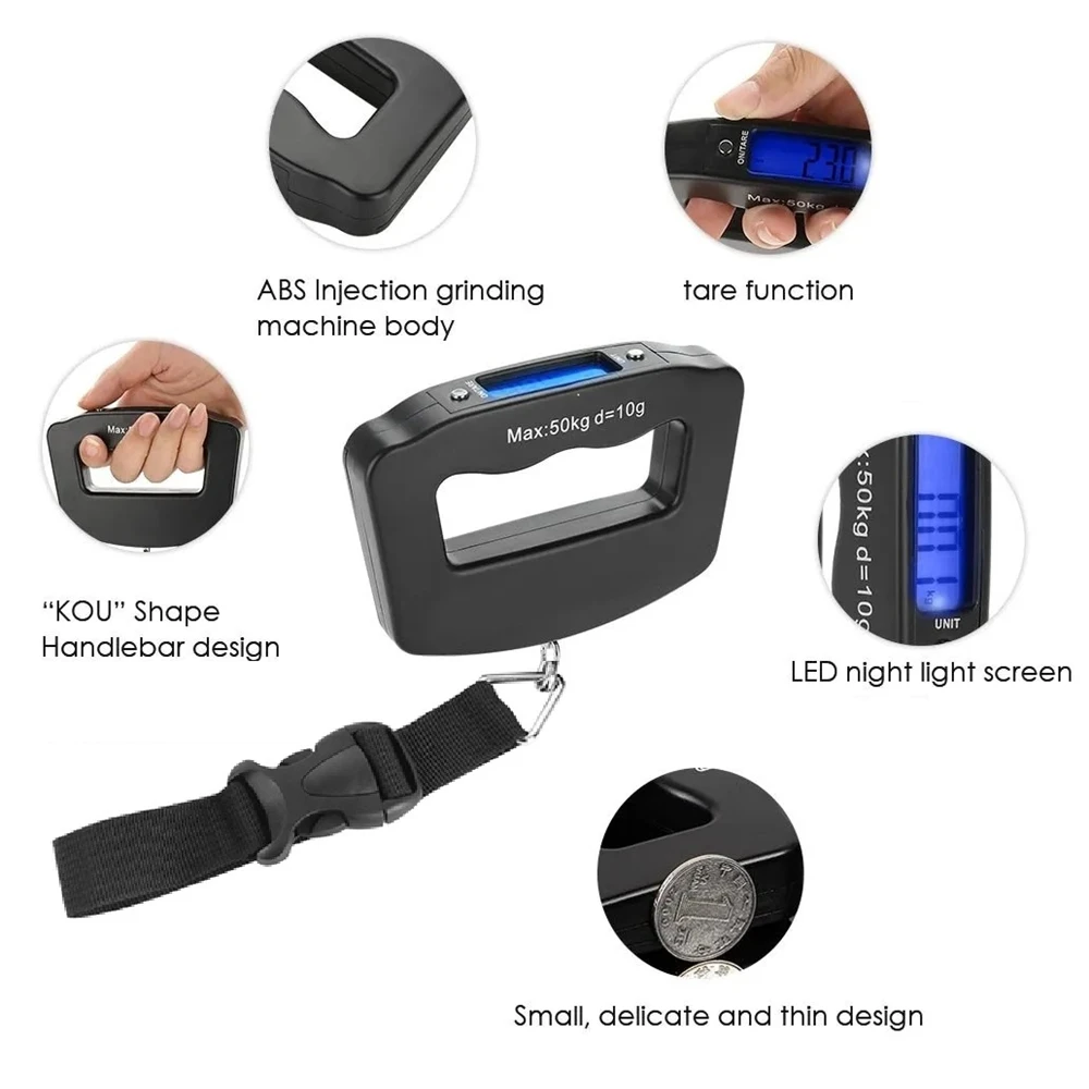 Digital Scale: Max bearing weight up to 50kg within 10g accuracy; LCD screen display weights in g/kg/lb/oz, easy to read when traveling.luggage scalePrecise & Stable:The digital weight scale will automatically lock the reading when data is stable. Luggage scale powered by 2 pcs AAA batery, 2 X AAA bateries not included . Auto shutoff saves battery life.luggage scale portableMulti-function:Lightweight design, easy to carry outside. With the functions of tare, 60 seconds automatic power-off, three kinds of unit conversion.luggage scale travel digitalEasy to Use: Simply turn the device on, loop the strap around the bag handle, pick up the bag by the scale handle and wait for the beep. Put the bag down and read the weight.luggage weight scale portableWidely Use: The simple and easy-to-use fishing scale has a sturdy hook for an extremely accurate measurement of different types of bags. Ideal for weighing, shopping, fishing and outdoor activities.suitcase scaleEasy to carry: It in a pocket or handbag for weighting on travel.