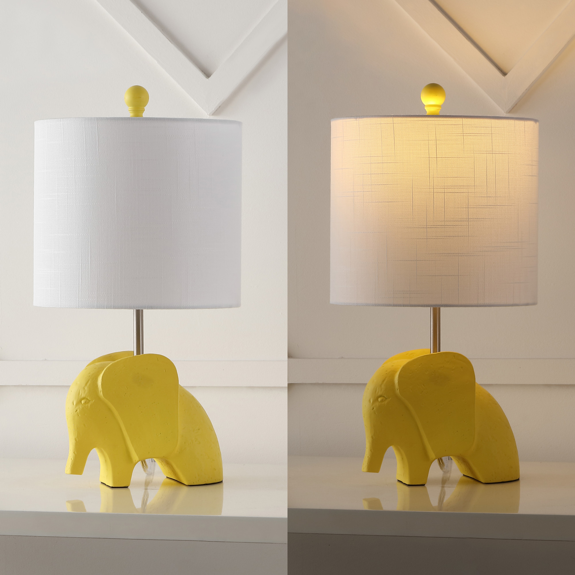 Item DescriptionAdd a youthful touch to your space with our playful elephant table lamp. Bright and colorful, this lamp is great way to add joy to a child's bedroom, playroom, or even a fun eclectic home office. Crafted from resin and metal, this lamp livens up any rustic or southwestern space.