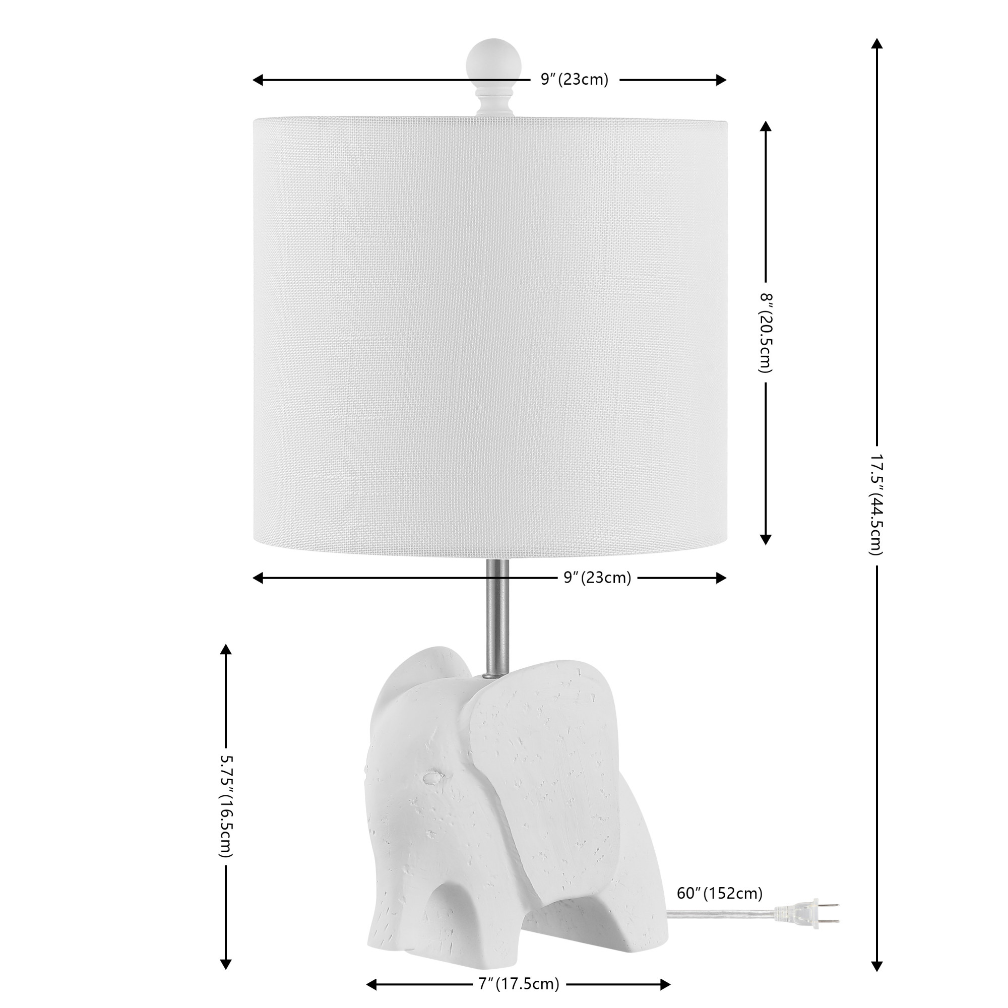 - Includes a fabric shade