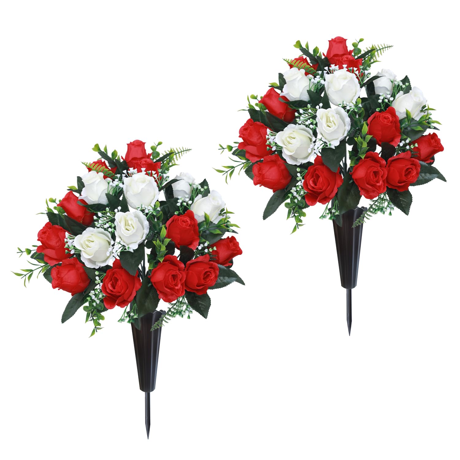 Lodou Set of 2 Artificial Cemetery Flowers, Memorial Flowers Red White