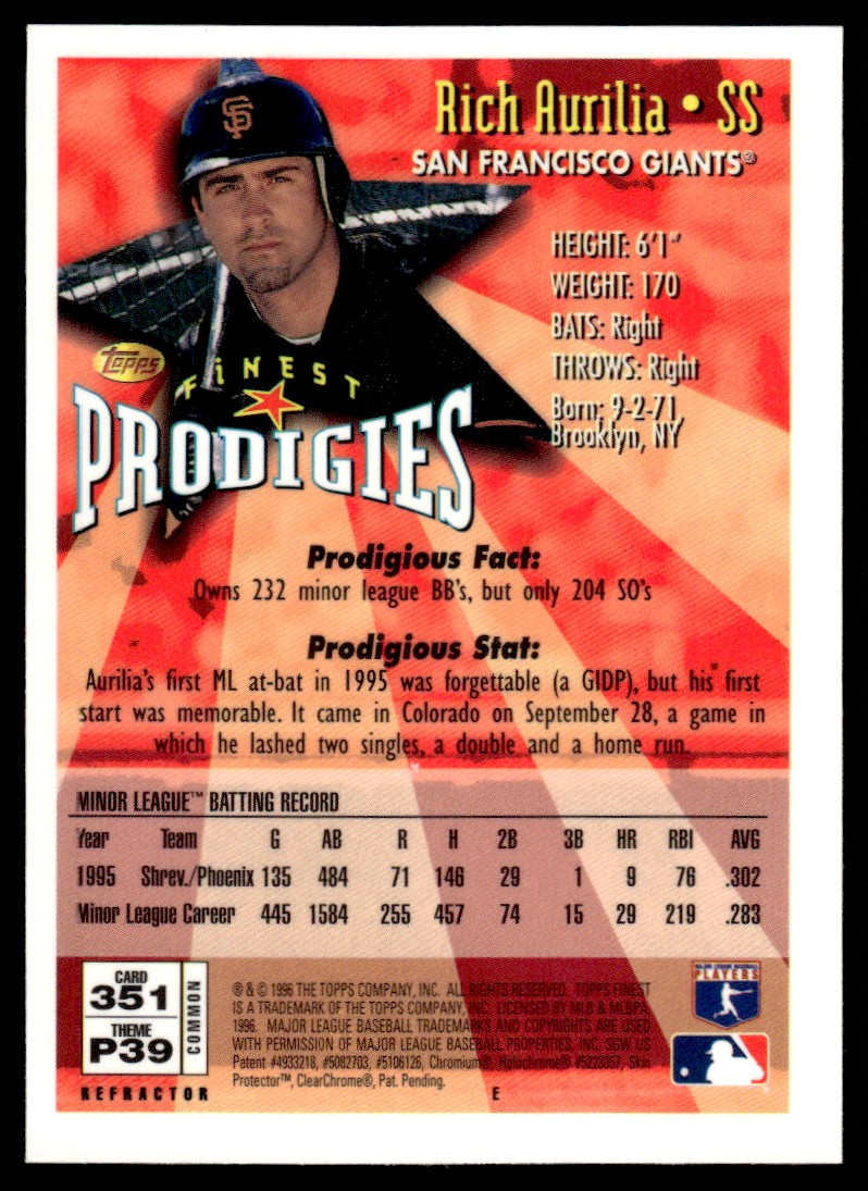 | 1996 Topps Finest Prodigies Refractor W/Coating Rich Aurilia Phoenix Firebirds |