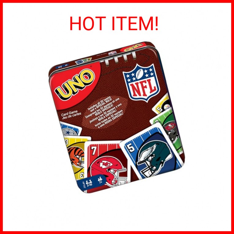Mattel Games UNO NFL Card Game in Storage Tin Box for Kids, Adults, Parties & Travel with NFL Team Logos & Special Rule (Amazon Exclusive)