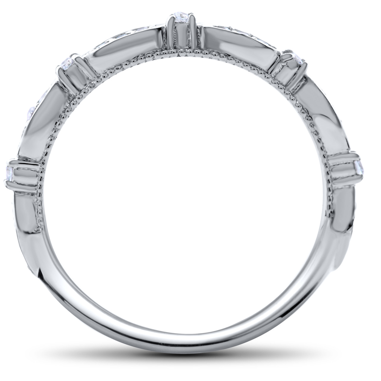 Womens ring features a 1/2 carat round brilliant cut genuine diamond and 24 round cut accent diamonds. Matching ring features 23 round cut genuine diamonds. Matching ring included. All diamonds are set in solid 14k white gold.