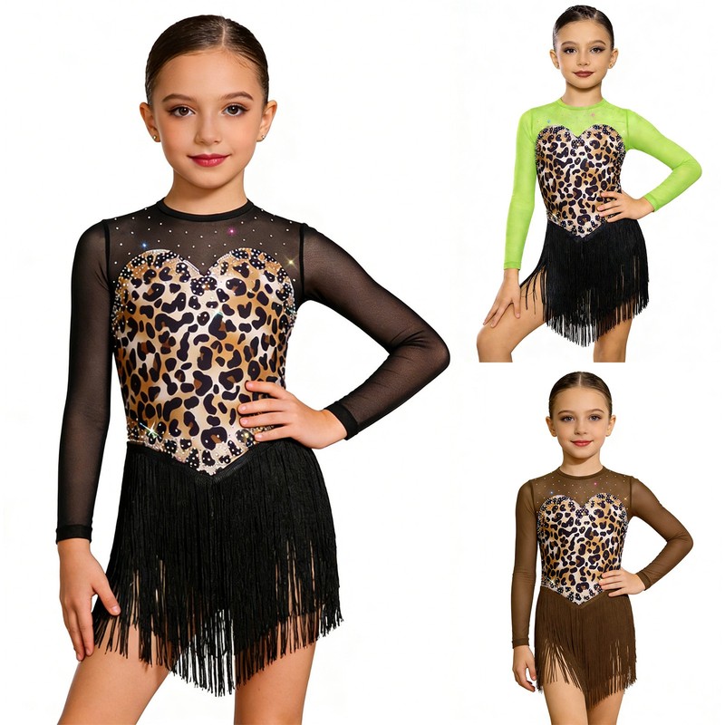 This three-piece set is perfect for various dance performances, gymnastics competitions, or just for casual play at home, being a great addition to a young girl’s wardrobe.