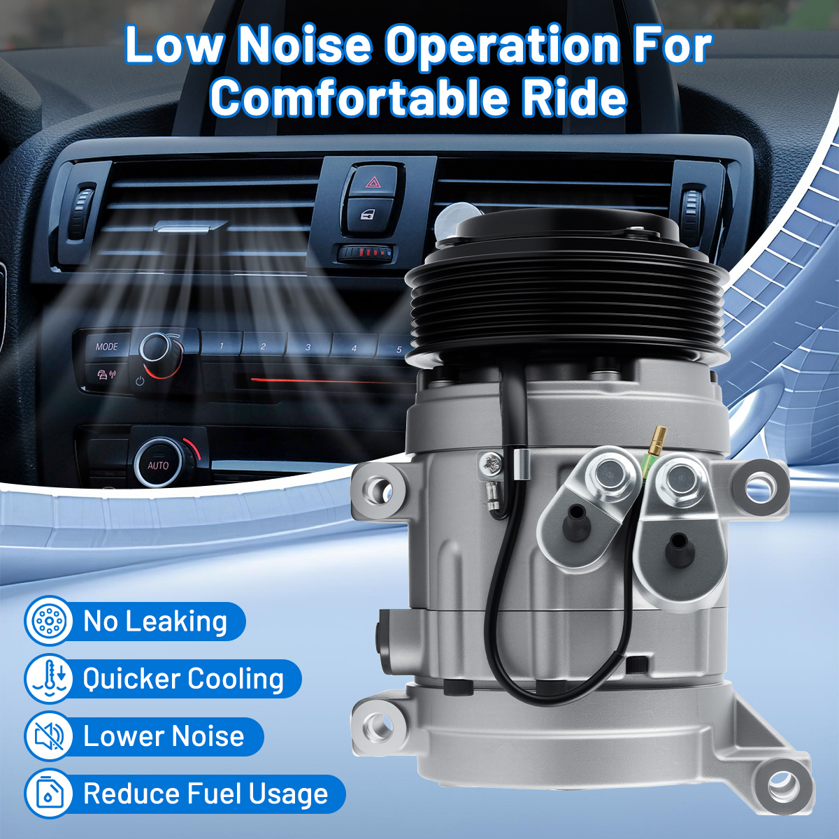 Our AC compressor kit works efficiently under low noise and tiny vibration to provide you a super cool trip. Driving at a stable speed will help reduce fuel consumption.