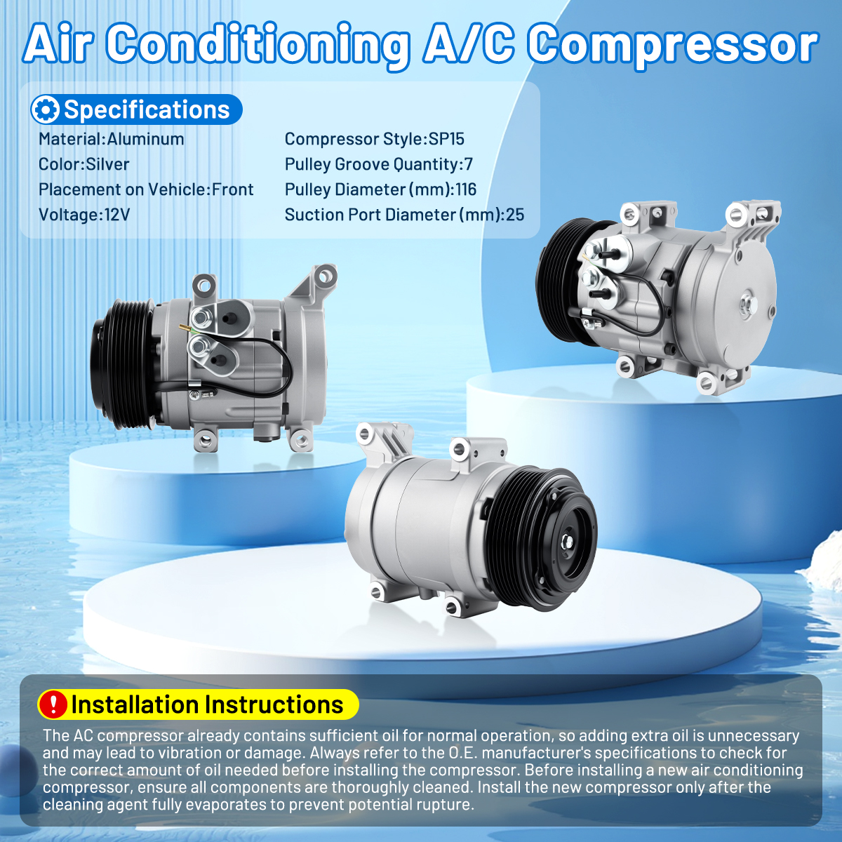 It is necessary to add appropriate amount of oil and refrigerant to the ac compressor before use.