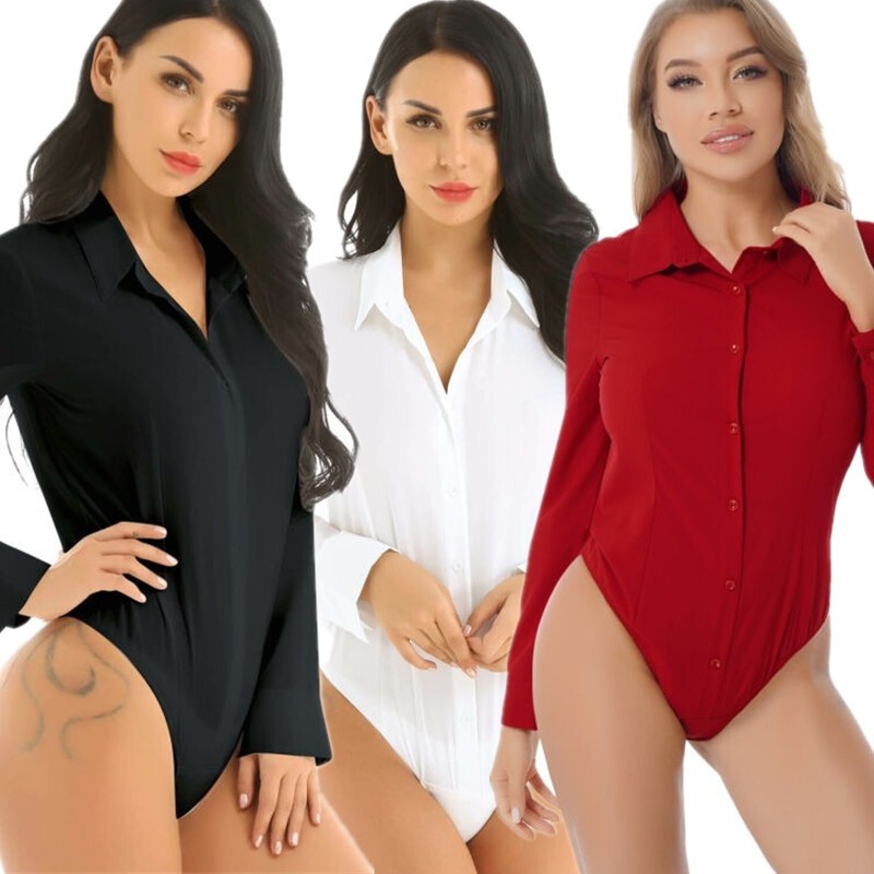 Stretchy fabric will enhance your slender and shapely body; see-through bodysuit has glossy looking to make you more charming.