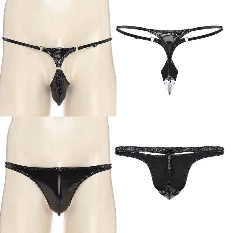 Mens Sexy Pu Leather Bulgh Pouch Briefs Underpants Wet Look Low Rise Underwear