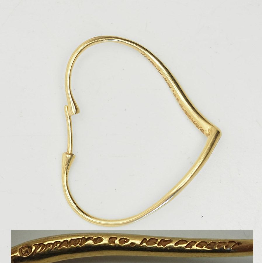 Vintage 18k gold SINGLE large heart earring by Elsa Peretti for Tiffany & Co. Measures 1 1/8" x 1 5/16". Weight is 2.6 grams. Very good condition.