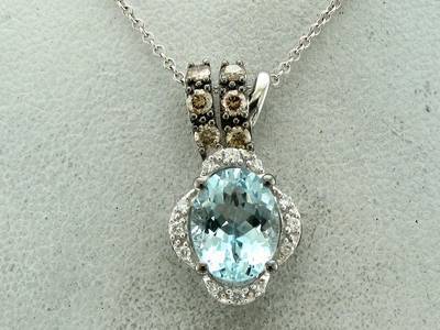 Le Vian Pendant featuring cts. Sea Blue Aquamarine, 1/4 cts. Chocolate Diamonds , 1/15 cts. Vanilla Diamonds set in 14K White Gold