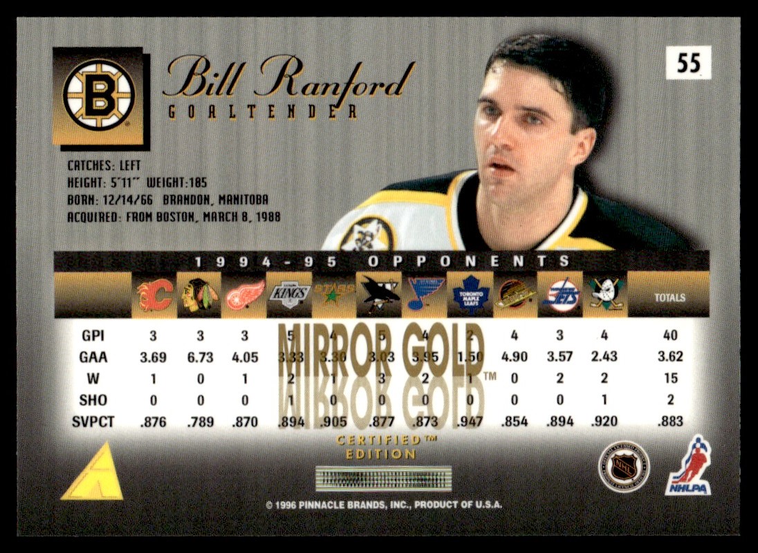| 1995-96 Select Certified Mirror Gold Bill Ranford Boston Bruins #55 |